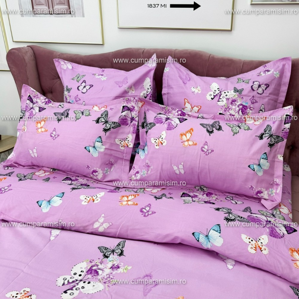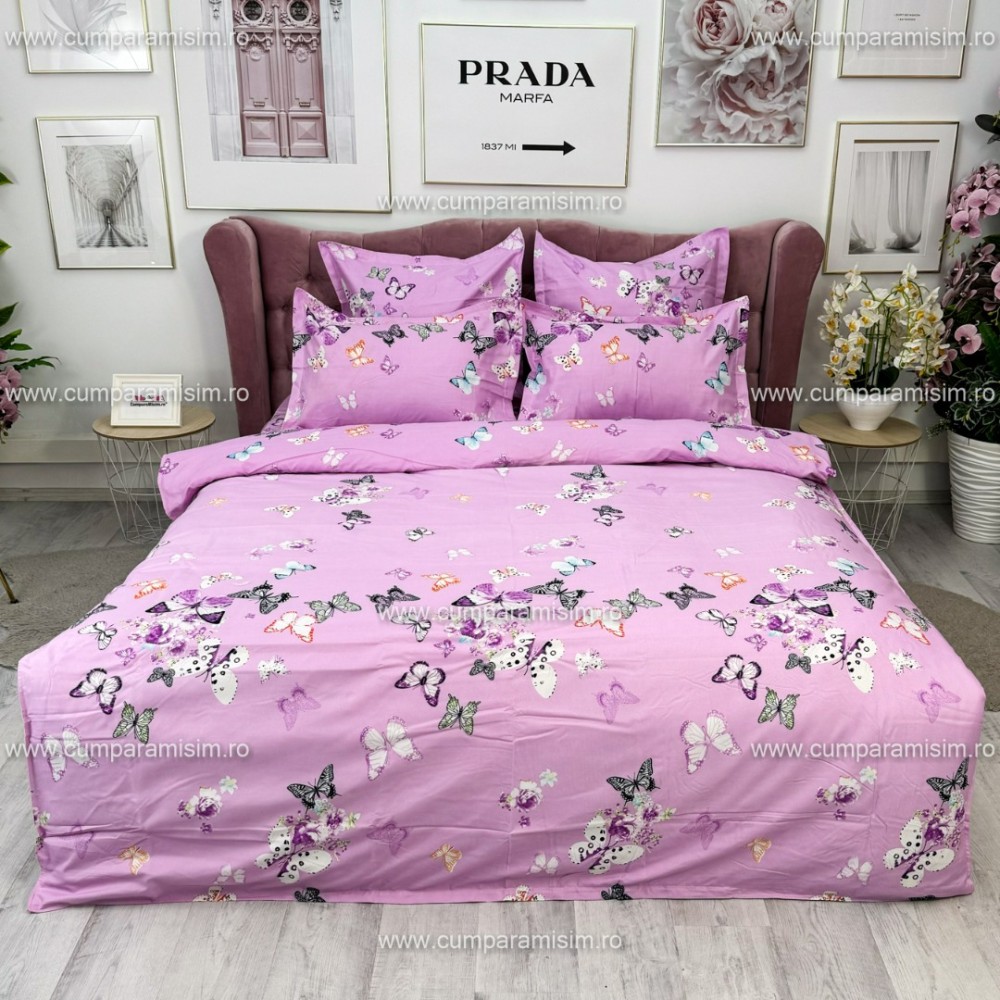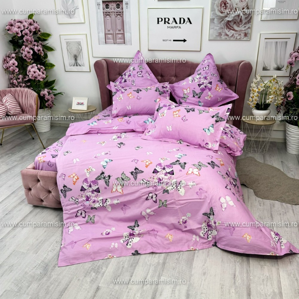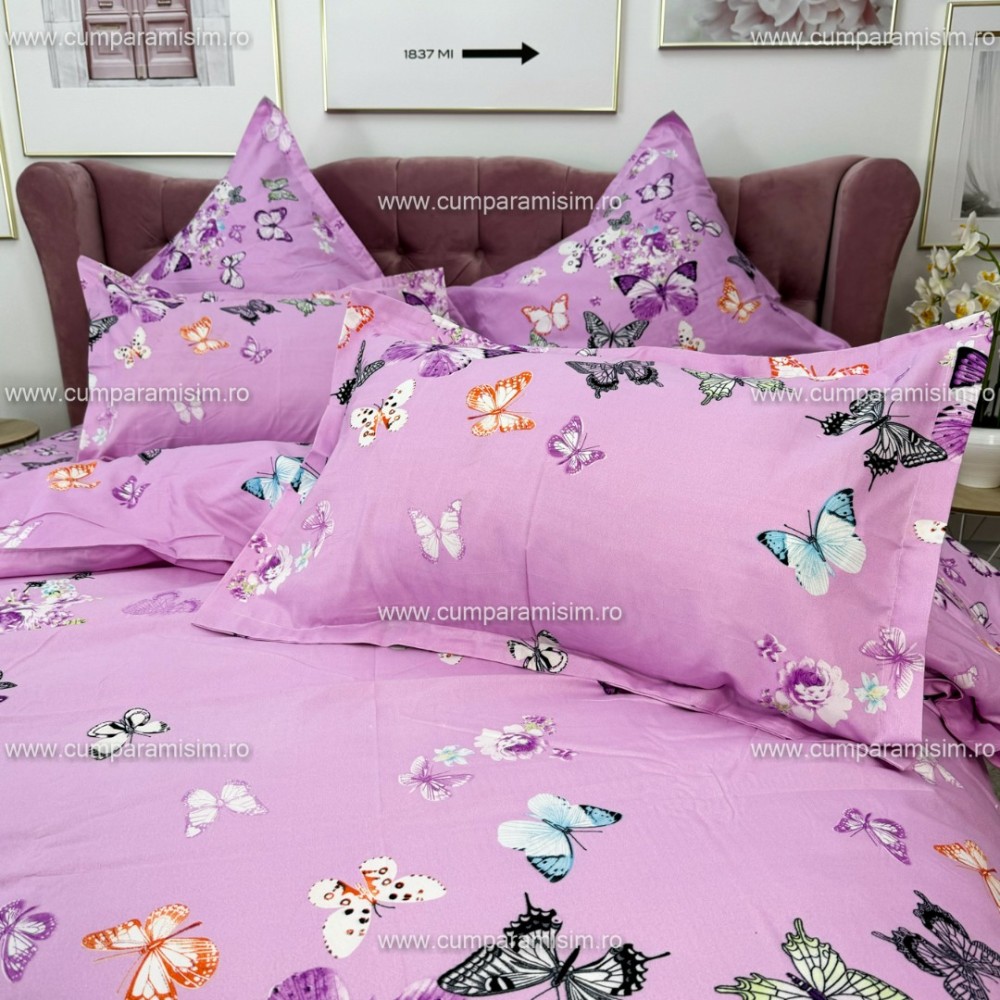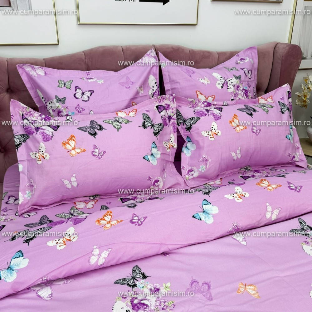 Lenjerie pat dublu, FINET, 6 piese, Lila, fluturi, Alti producatori, cod produs: YNF22