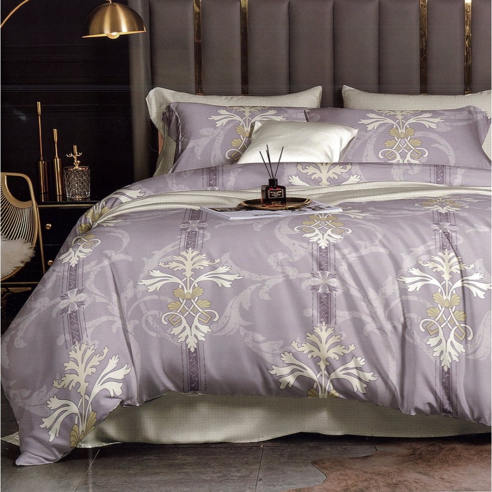 Lenjerie pat dublu, FINET, 6 piese, Lila, model oriental, Johny Home Pucioasa, cod produs: DKF144