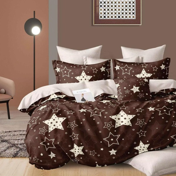 Lenjerie Pat Dublu, FINET, 6 piese, Maro, stelute, East Romania, cod produs: EST-FN-324
