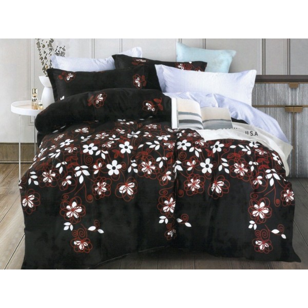 Lenjerie pat dublu, FINET, 6 piese, Negru, flori, Alti producatori, cod produs: YNF86