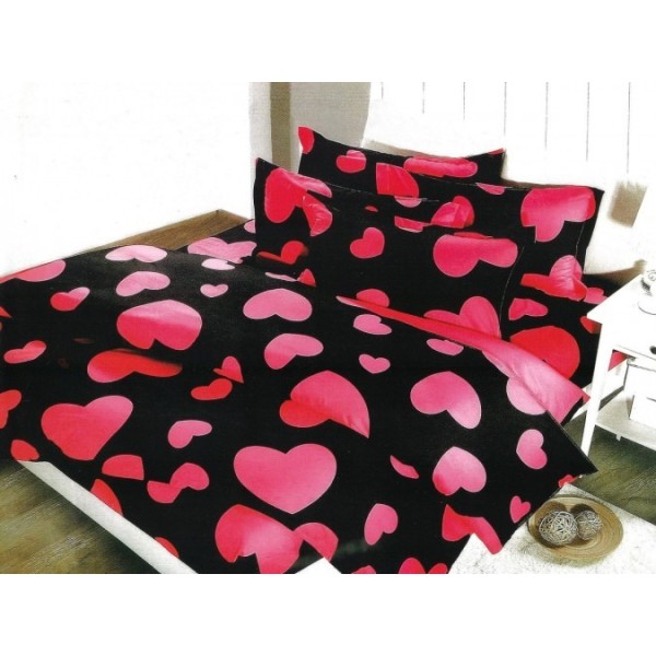 Lenjerie pat dublu, FINET, 6 piese, Negru - Roz, inimioare, Alti producatori, cod produs: YNF93