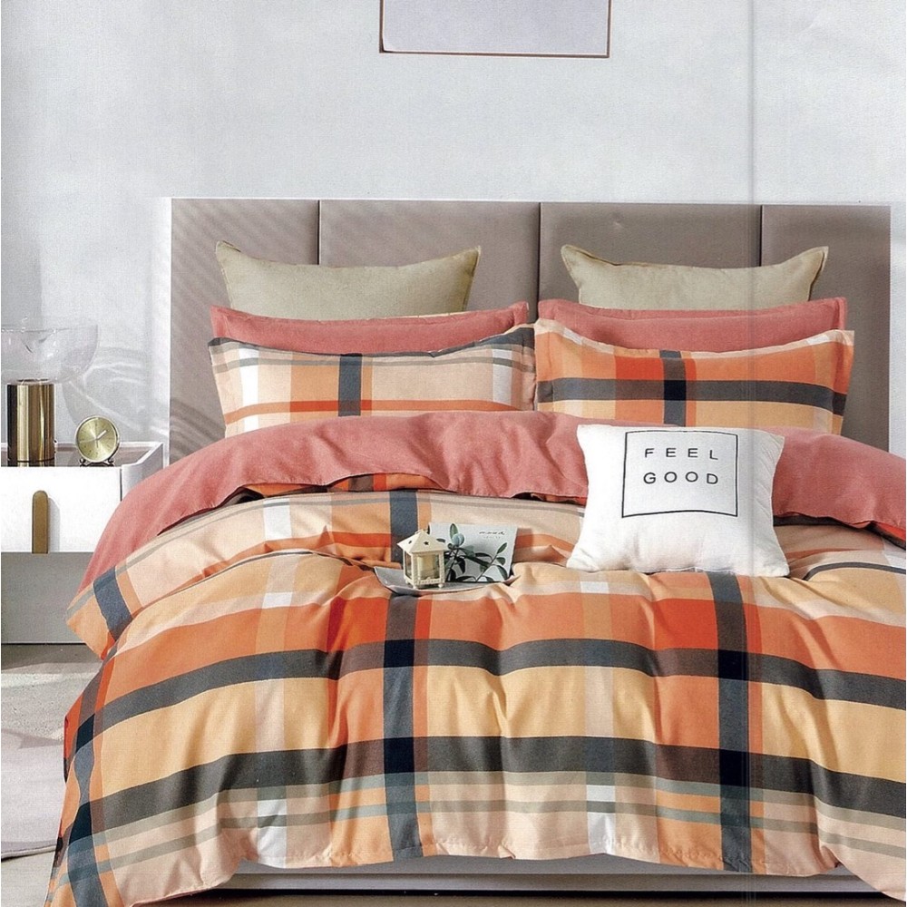 Lenjerie pat dublu, FINET, 6 piese, Portocaliu, dungi, Johny Home Pucioasa, cod produs: DKF174