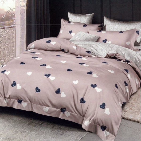 Lenjerie pat dublu, FINET, 6 piese, Pudra, inimioare, Johny Home Pucioasa, cod produs: DKF130
