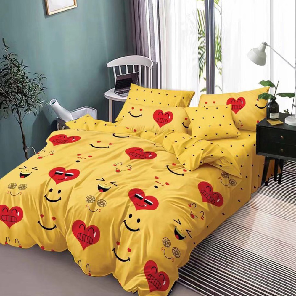 Lenjerie pat dublu, Ralex Pucioasa, Finet, 6 piese, Galben-Rosu, inimioare, cod produs: RXF12