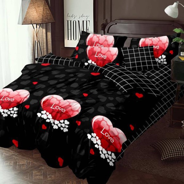 Lenjerie pat dublu, Ralex Pucioasa, Finet, 6 piese, Rosu-Negru, inimioare, cod produs: RXF30
