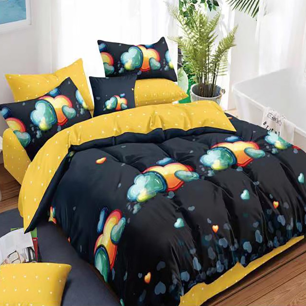 Lenjerie pat dublu, Ralex Pucioasa, Finet, 6 piese, Gri-Galben, inimioare, cod produs: RXF40