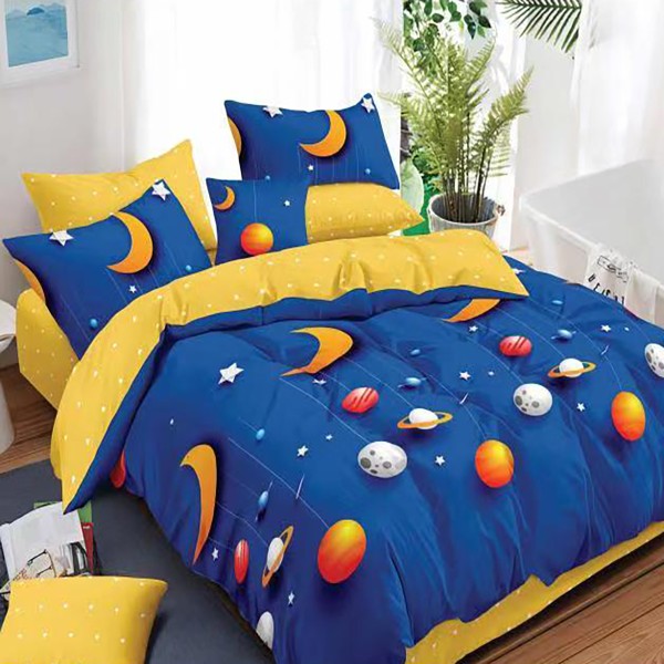 Lenjerie pat dublu, Ralex Pucioasa, Finet, 6 piese, Albastru-Galben, planete, cod produs: RXF43