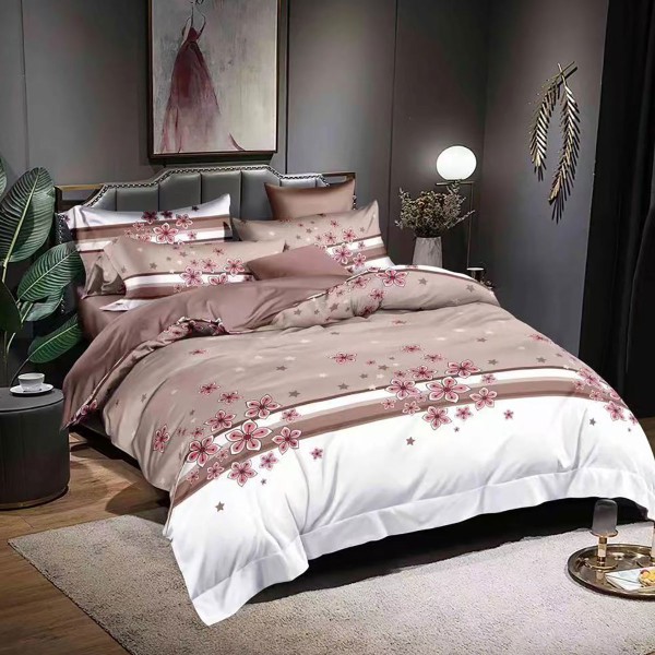 Lenjerie pat dublu, Ralex Pucioasa, Finet, 6 piese, Bej-Alb, flori, cod produs: RXF59