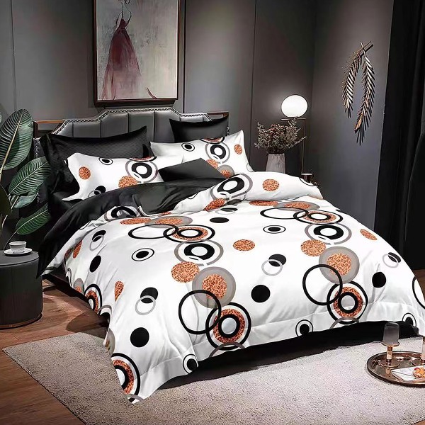 Lenjerie pat dublu, Ralex Pucioasa, Bumbac Finet, 6 piese, Alb-Negru, cercuri, cod produs: RXF60