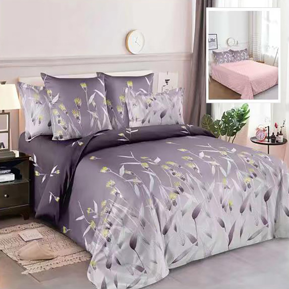 Lenjerie pat dublu, Ralex Pucioasa, Finet, 6 piese, Purpuriu, flori, cod produs: RXF87