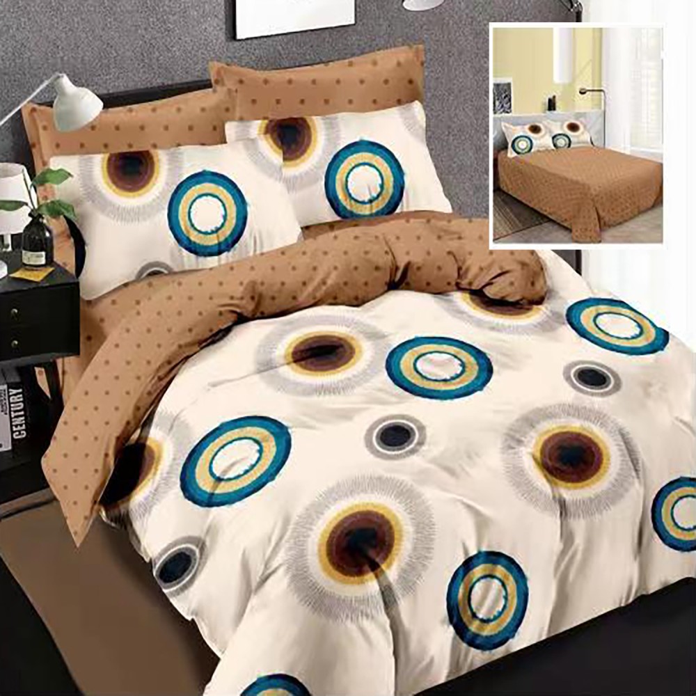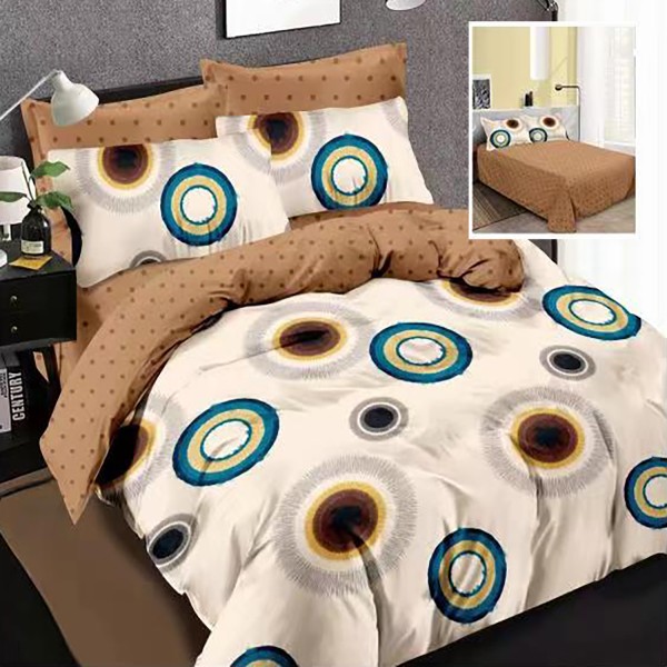 Lenjerie pat dublu, Ralex Pucioasa, Finet, 6 piese, Bej-Maro, cercuri, cod produs: RXF93