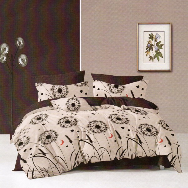 Lenjerie pat dublu, Ralex Pucioasa, Finet, 6 piese, Bej-Maro, papadii, cod produs: RXF144