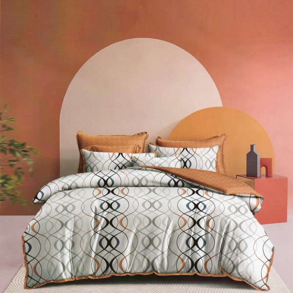 Lenjerie pat dublu, Ralex Pucioasa, Bumbac Finet, 6 piese, Alb-Maro, model clasic, cod produs: RXF155