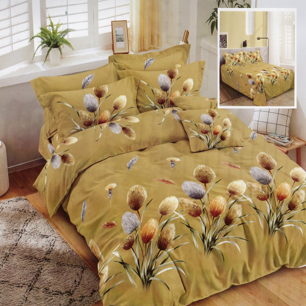 Lenjerie pat dublu, Ralex Pucioasa, Finet, 6 piese, Bej, flori, cod produs: RXF168