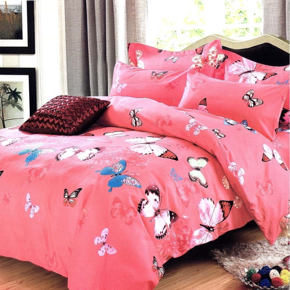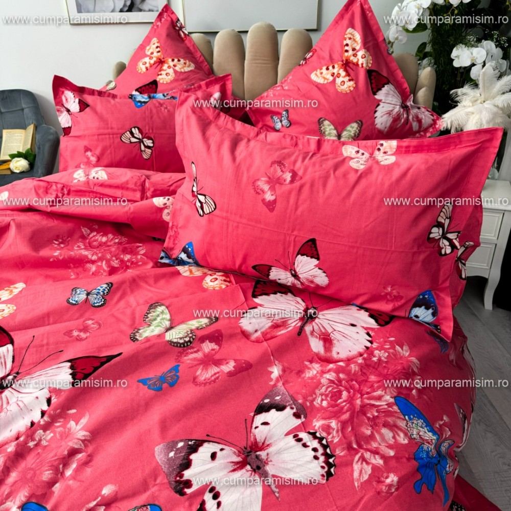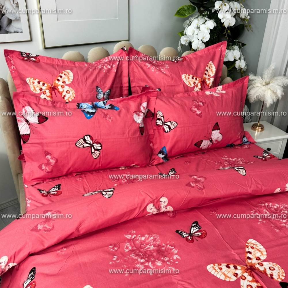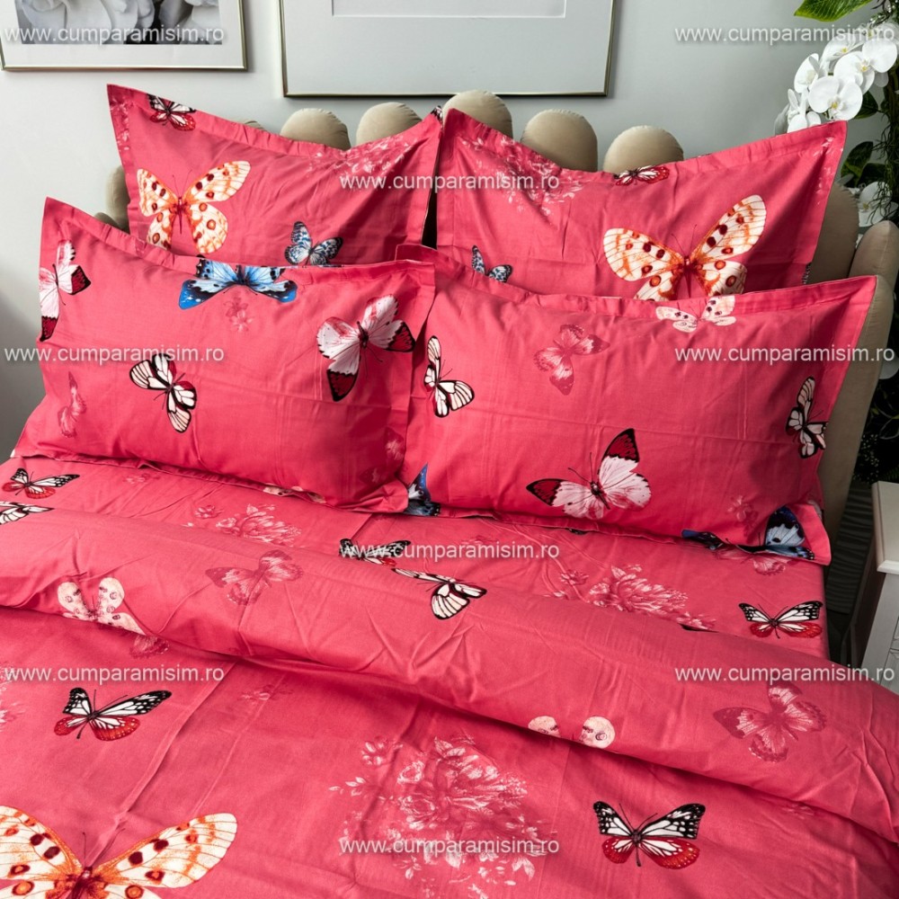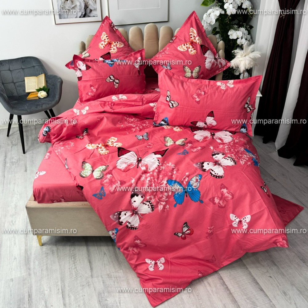 Lenjerie pat dublu, FINET, 6 piese, Roz, fluturasi, Alti producatori, cod produs: YNF29