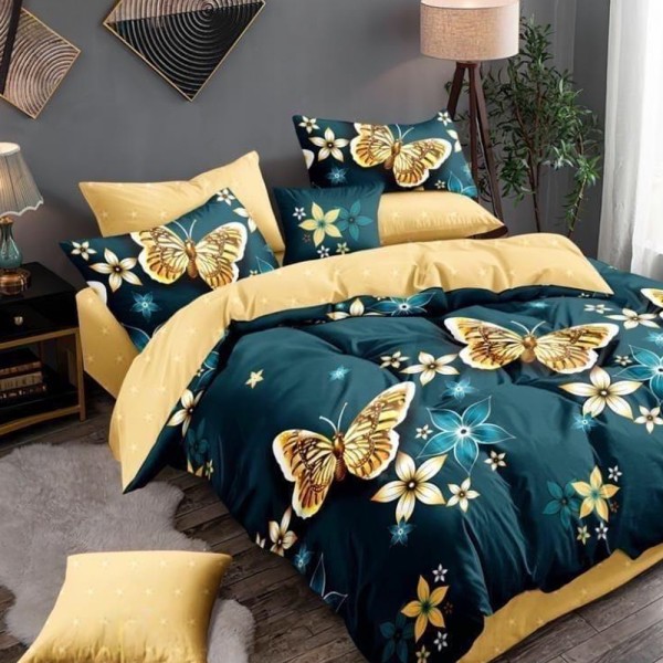 Lenjerie Pat Dublu, FINET, 6 piese, Verde, galben, fluturi, East Romania, cod produs: EST-FN-132