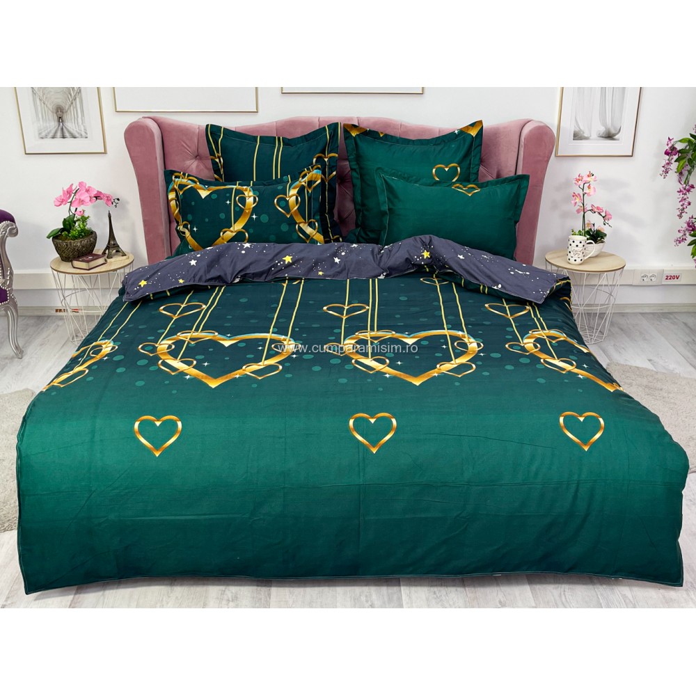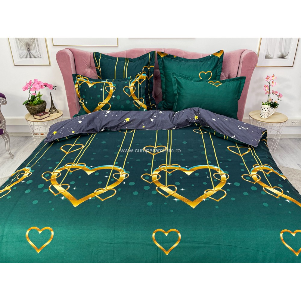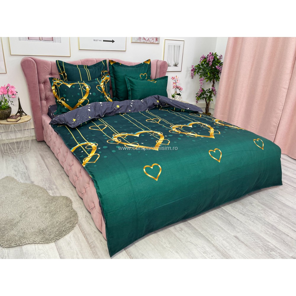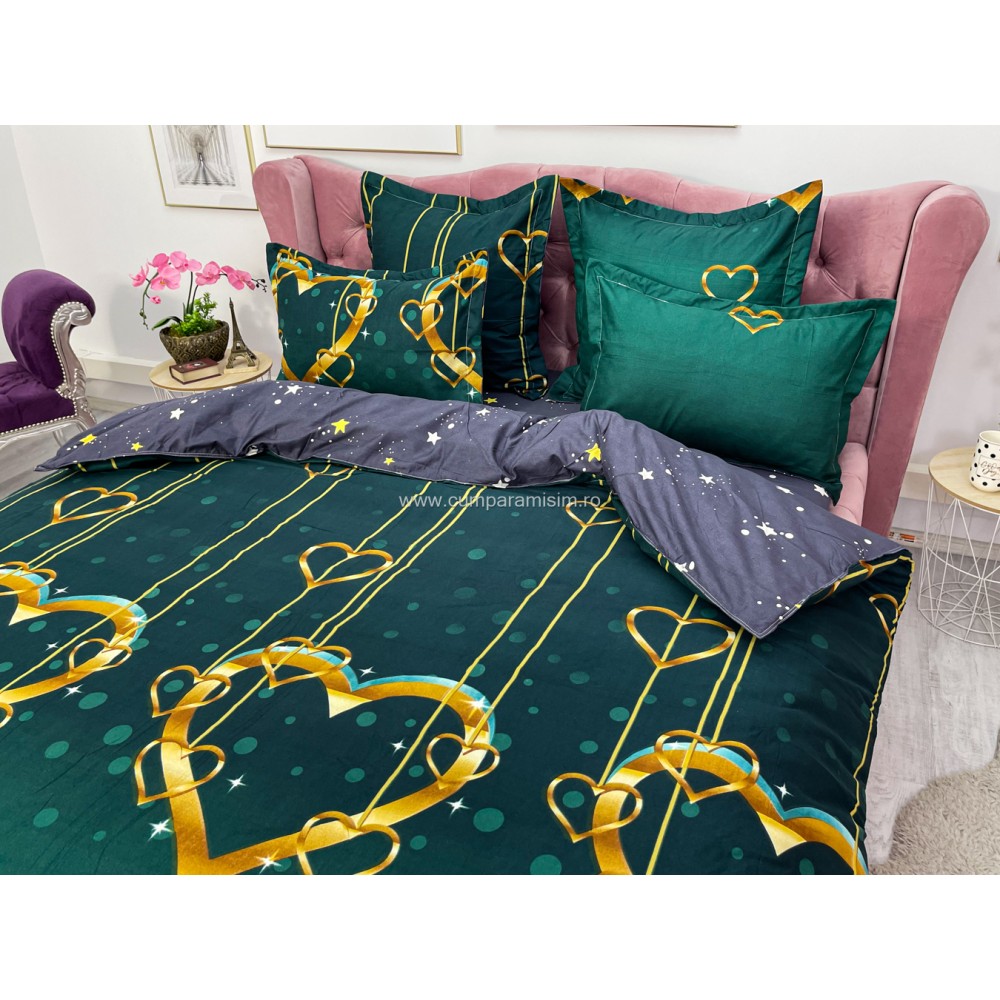 Lenjerie pat dublu, FINET, 6 piese, Verde-Auriu, inimioare, Alti producatori, cod produs: YNF83