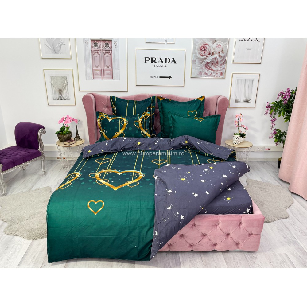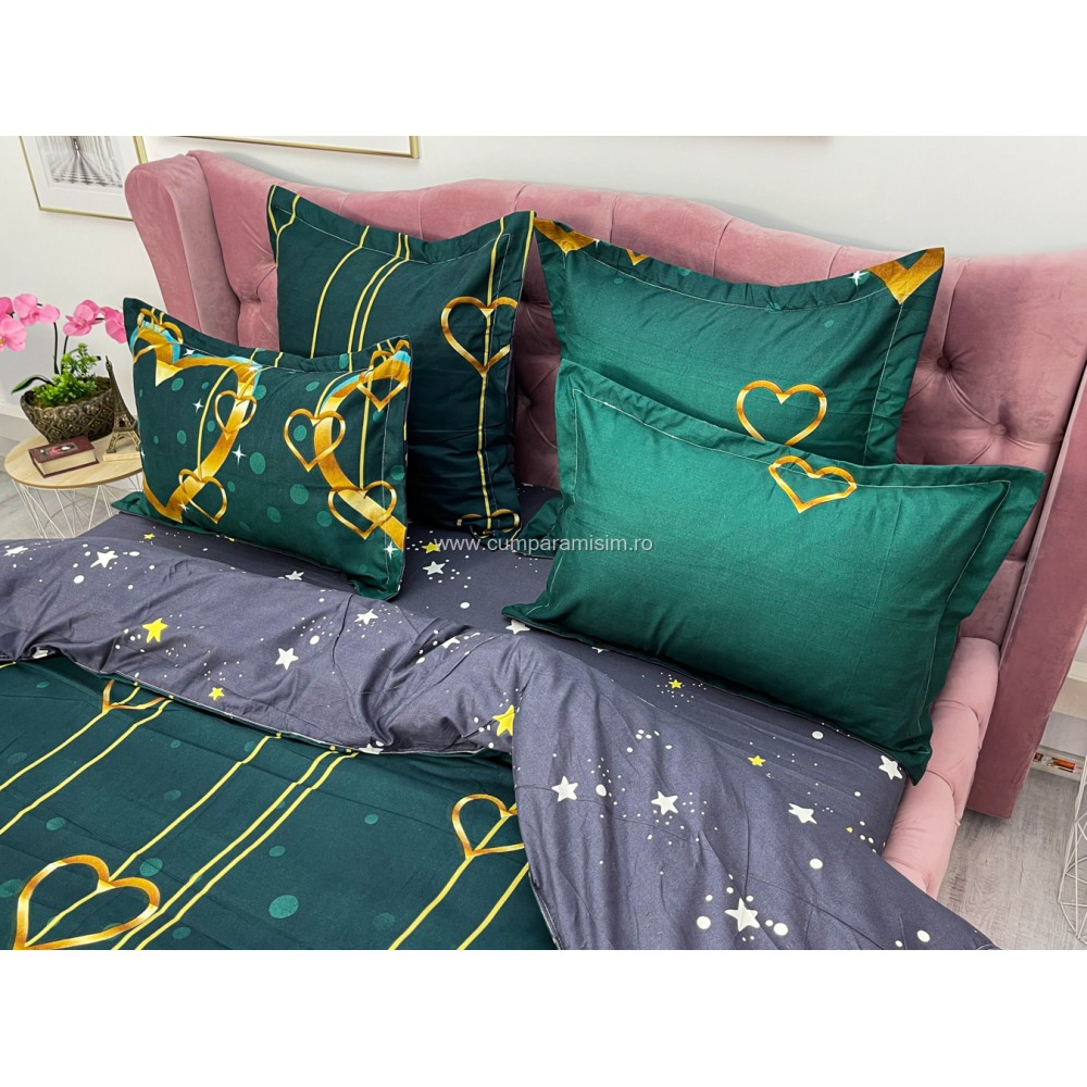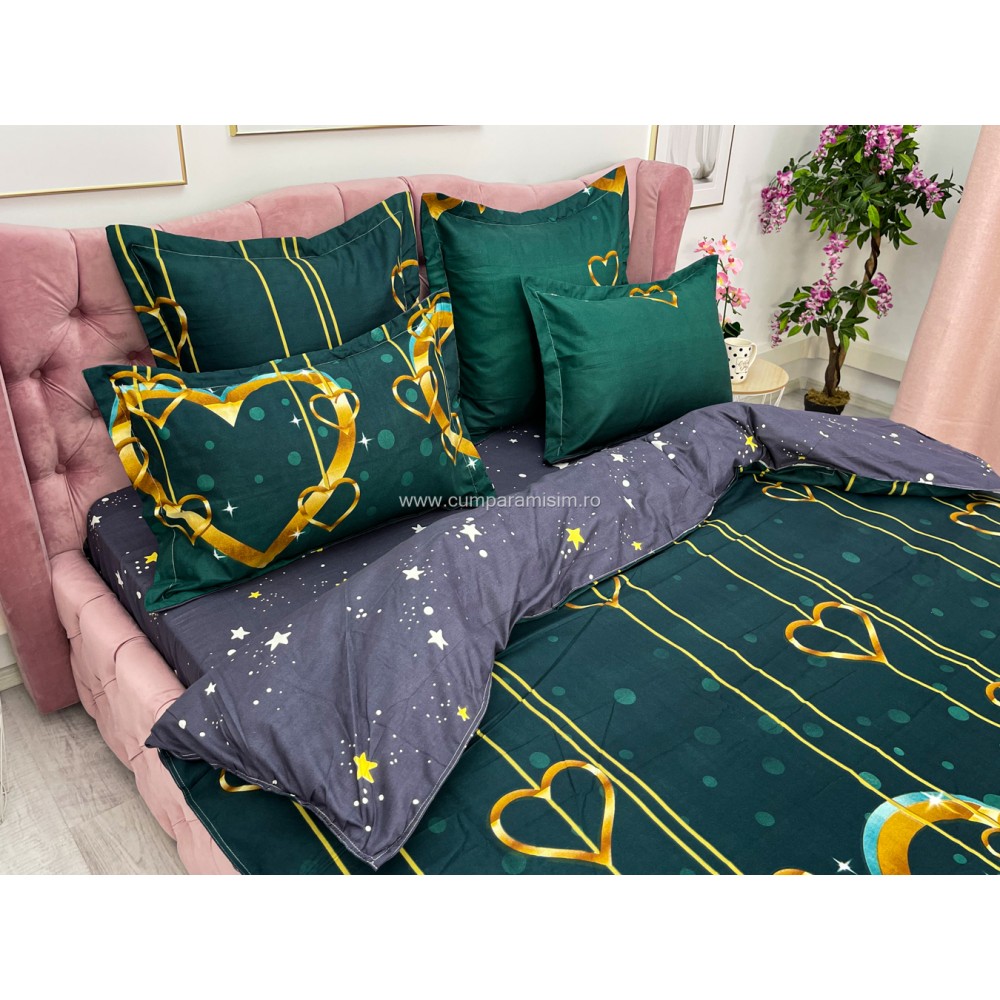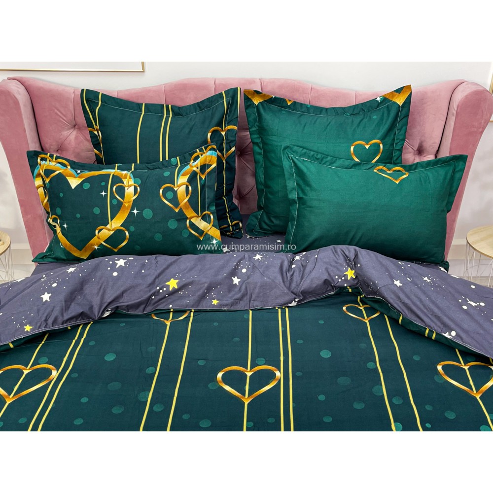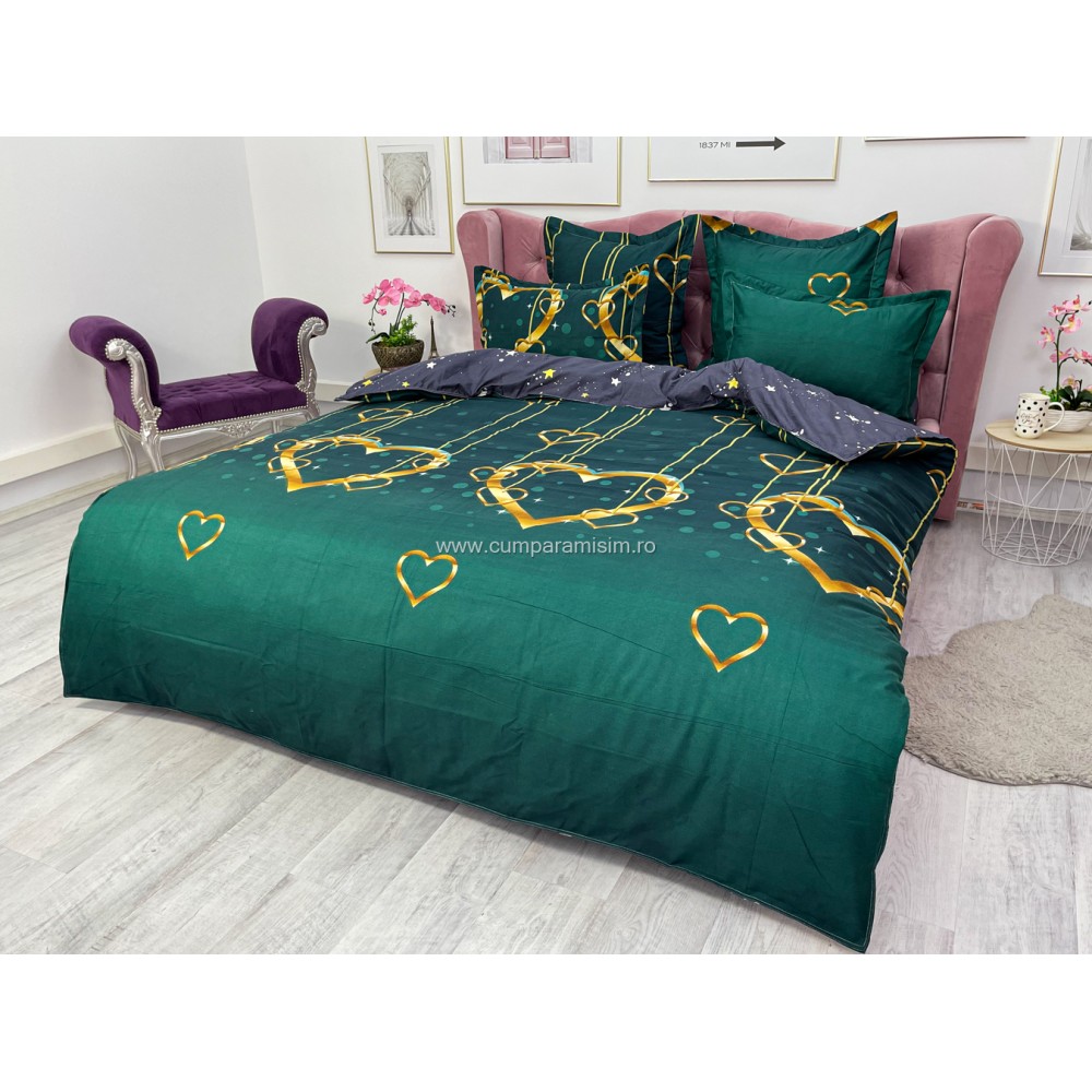 Lenjerie pat dublu, FINET, 6 piese, Verde-Auriu, inimioare, Alti producatori, cod produs: YNF83