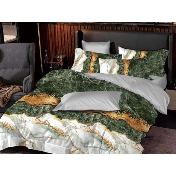 Lenjerie pat dublu, FINET, 6 piese, Verde-Multicolor, marmura, Alti producatori, cod produs: YNF98