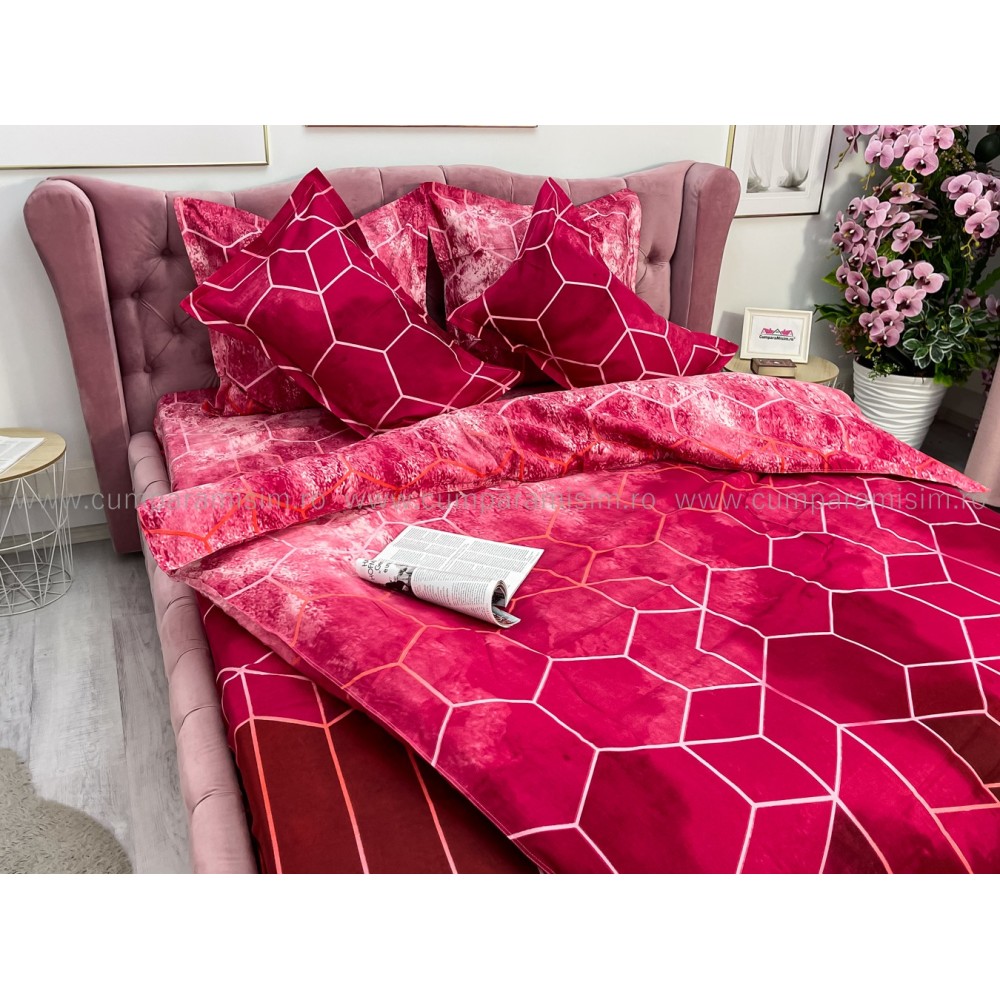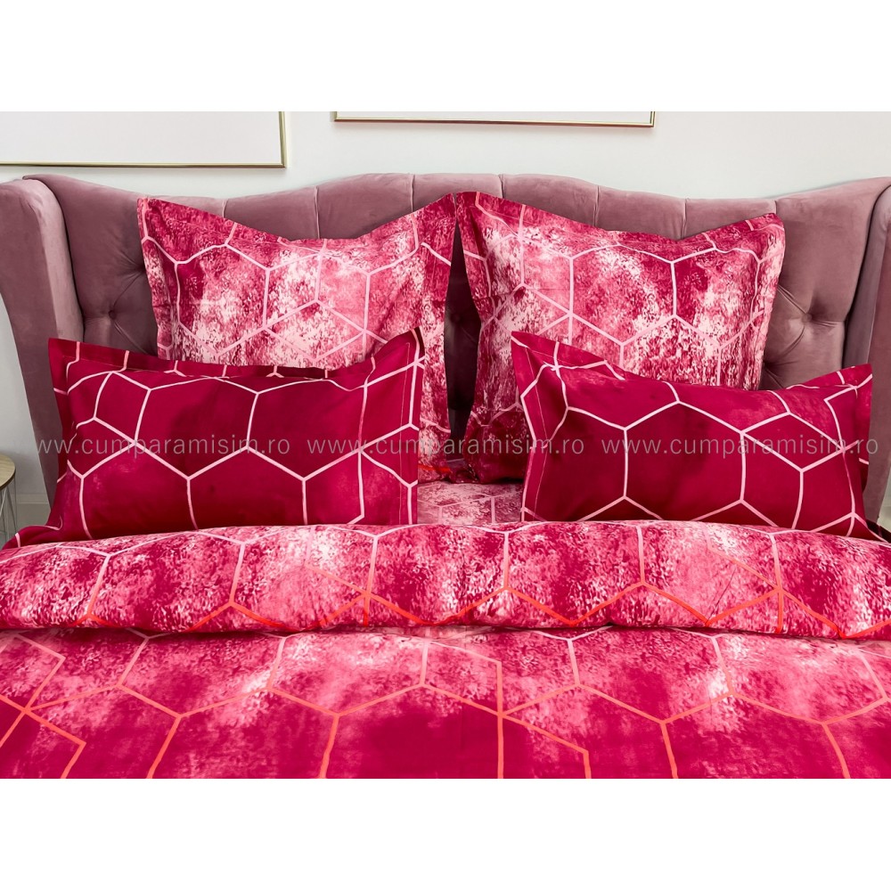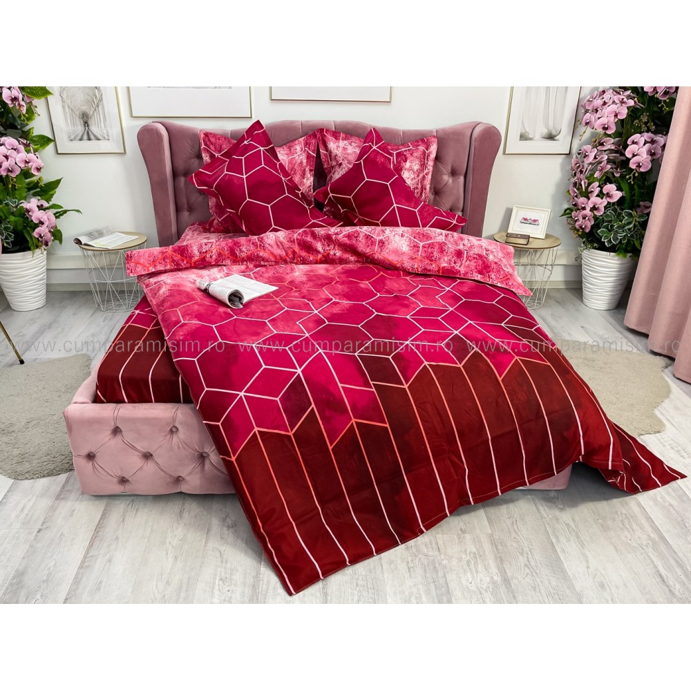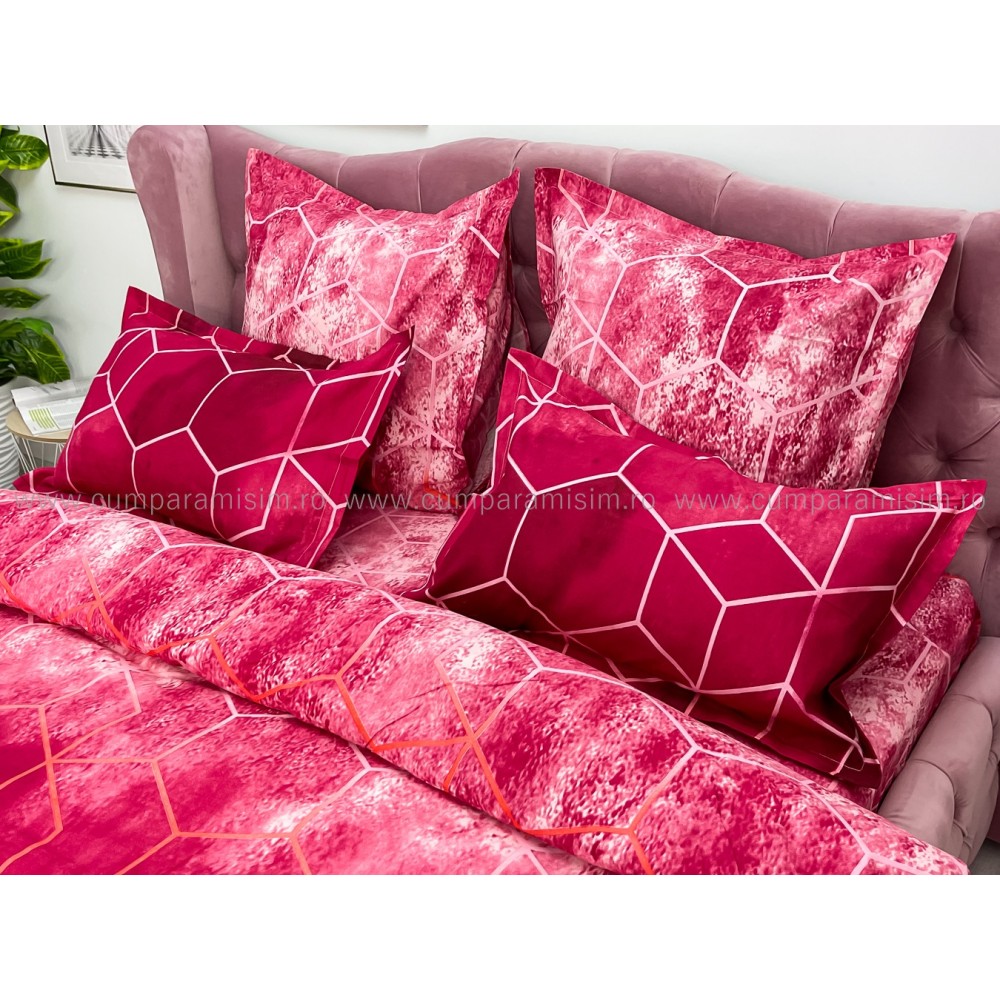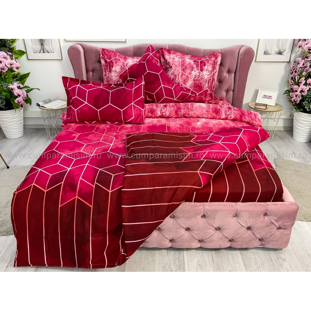 Lenjerie pat dublu, FINET, 6 piese, Visiniu-Roz, forme geometrice, Alti producatori, cod produs: YNF87