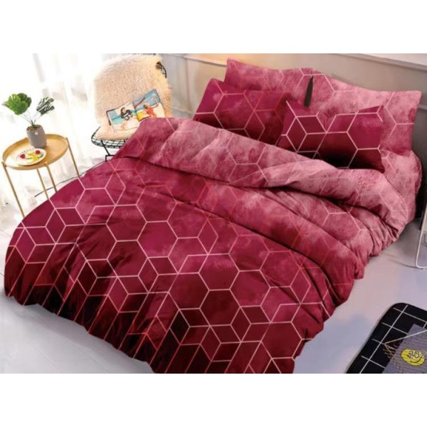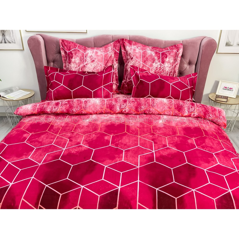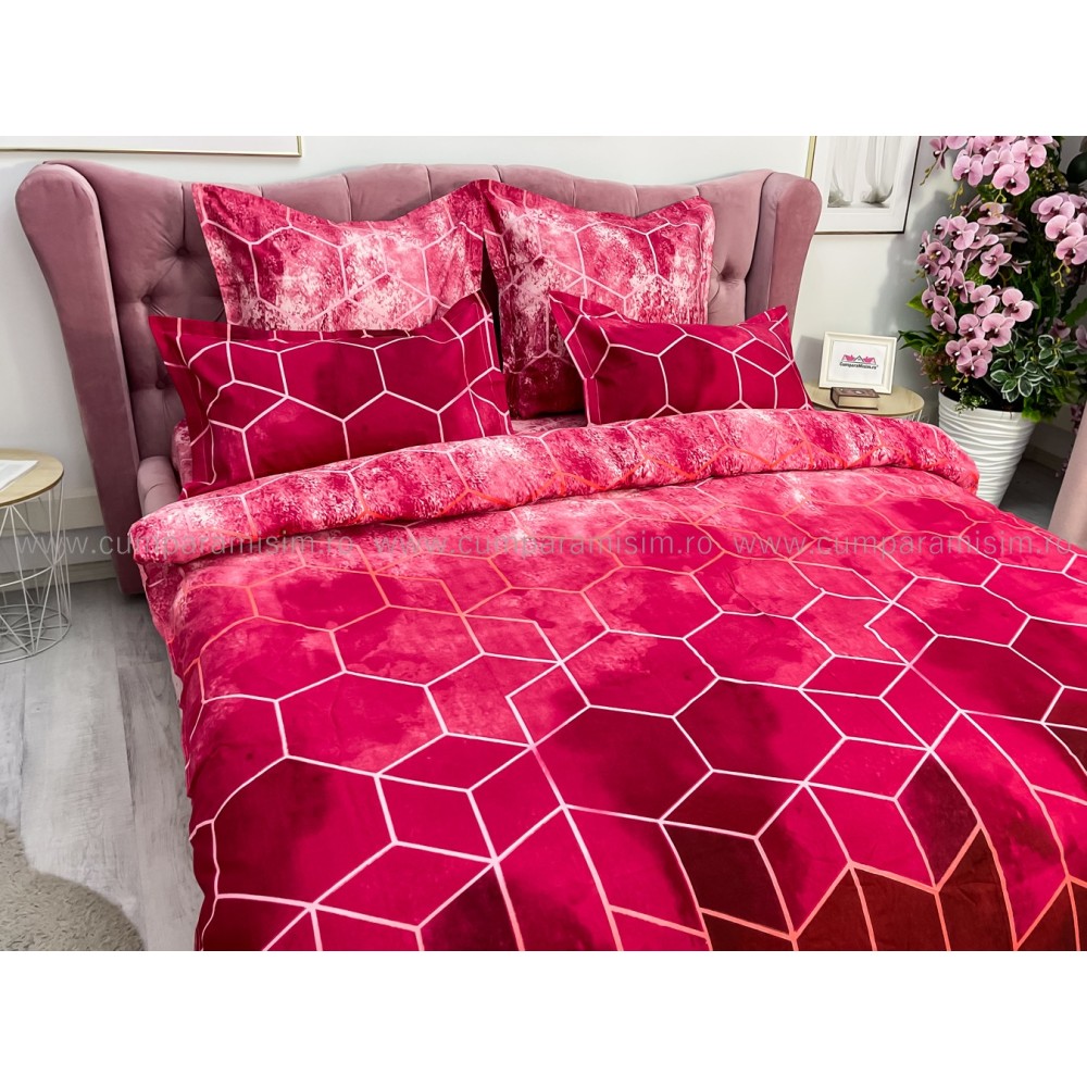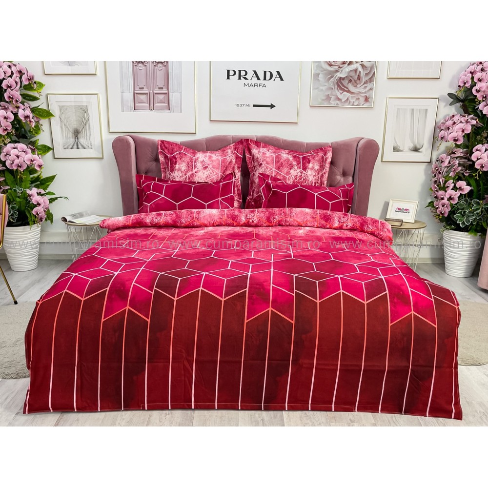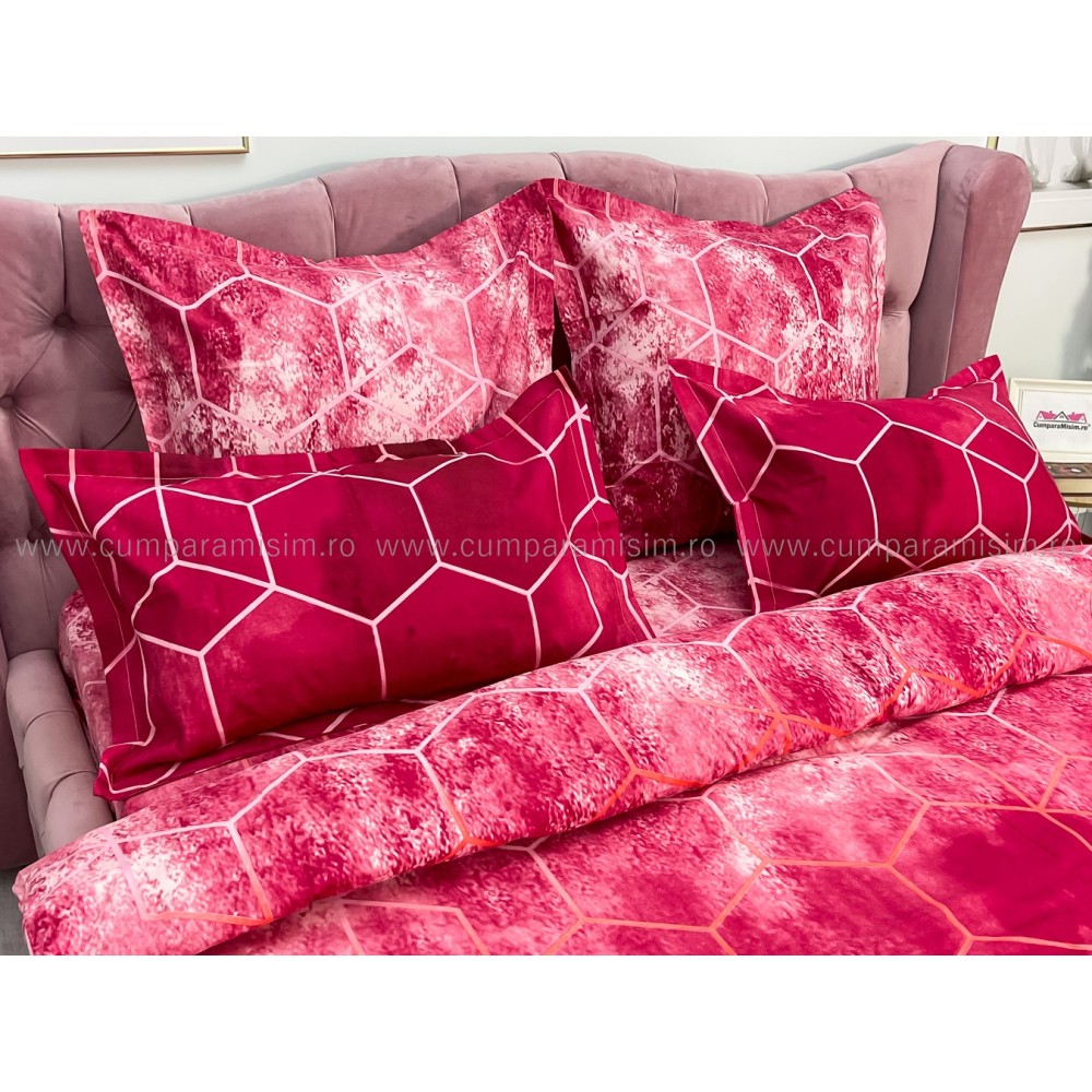 Lenjerie pat dublu, FINET, 6 piese, Visiniu-Roz, forme geometrice, Alti producatori, cod produs: YNF87