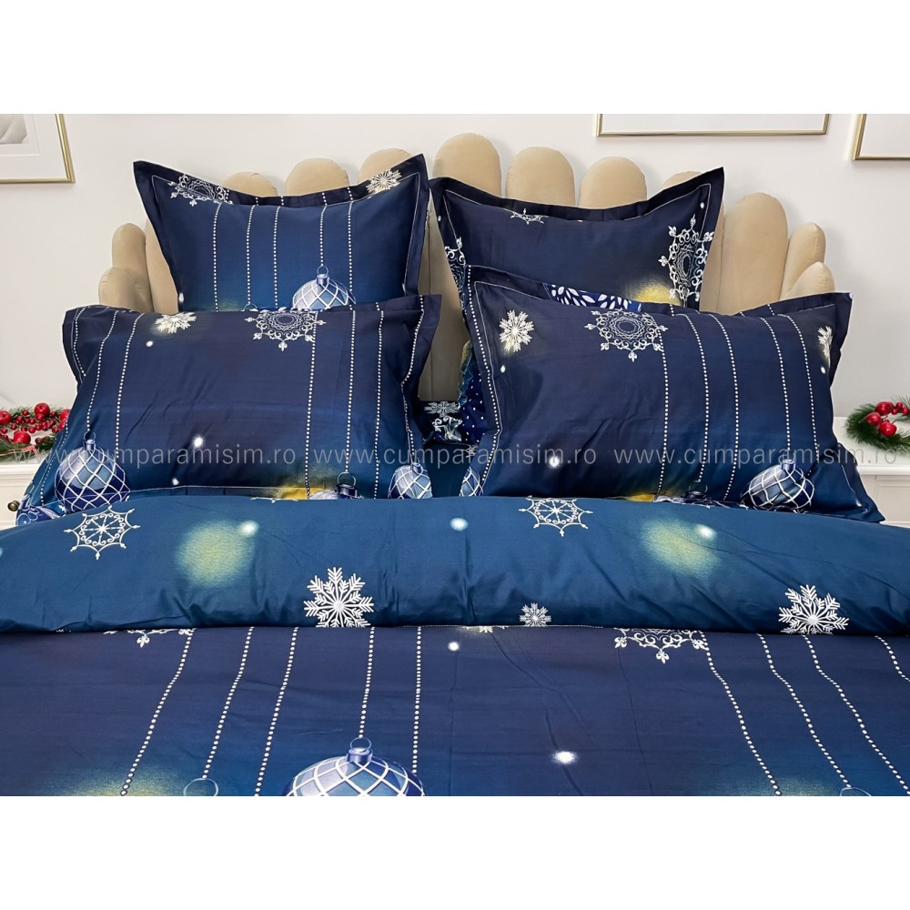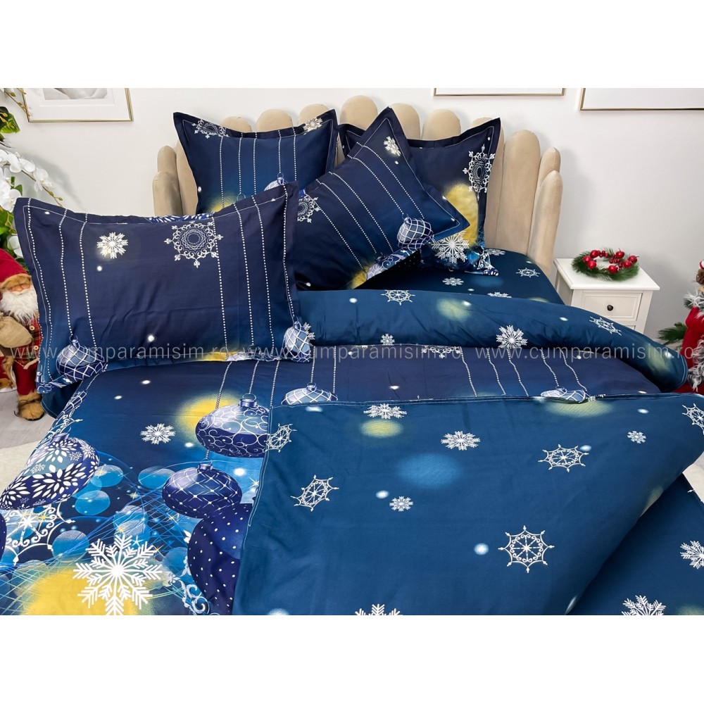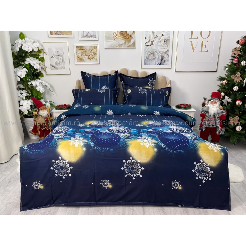 Lenjerie pat dublu, FINET, 6 piese, Craciun, Jojo Home, Bleumarin, globulete, cod produs: JOM28