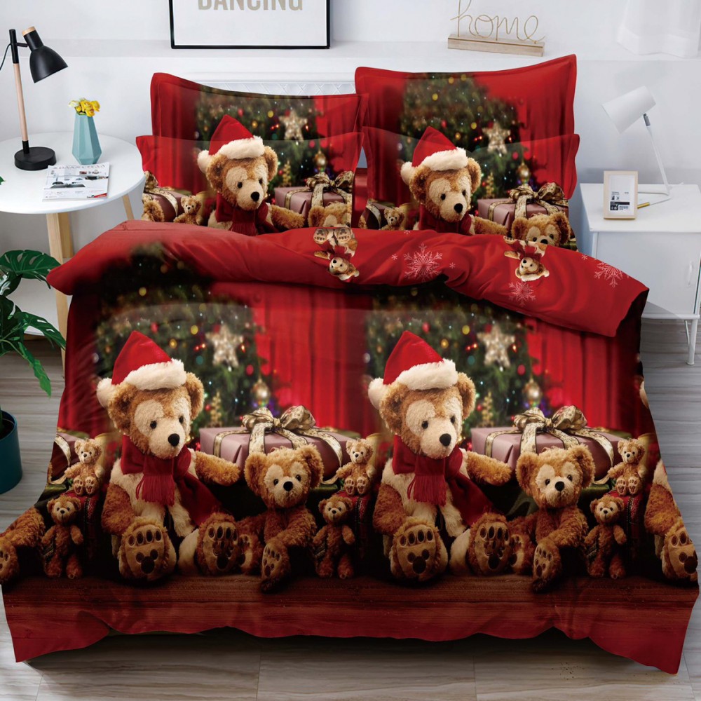 Lenjerie pat dublu, FINET, 6 piese, Craciun, Jojo Home, Rosu, Mos Craciun, cod produs: JOM30