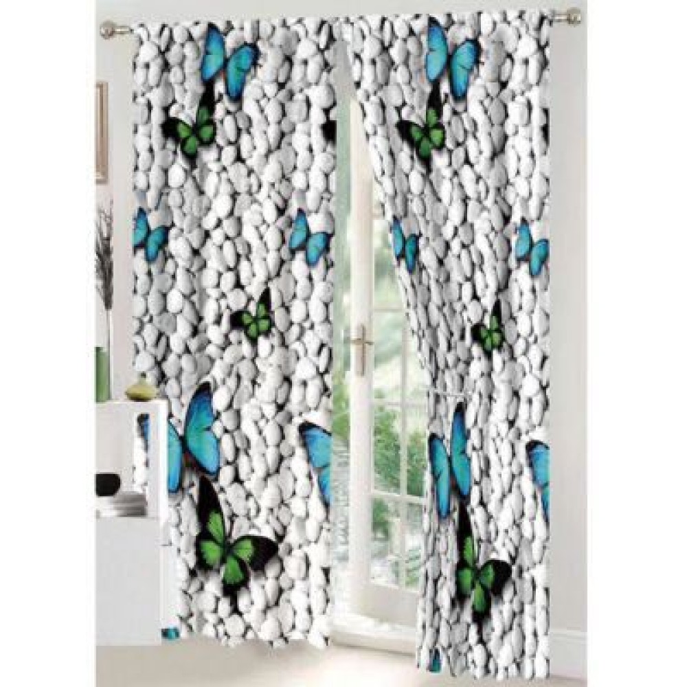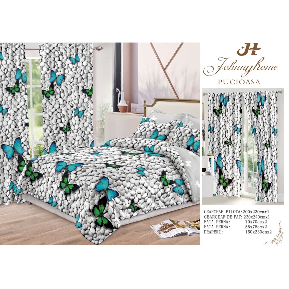 Lenjerie pat dublu, FINET, 8 piese, cu 2 DRAPERII INCLUSE, Gri, fluturi pe pietre, Johny Home Pucioasa, cod produs: SPR-S-14