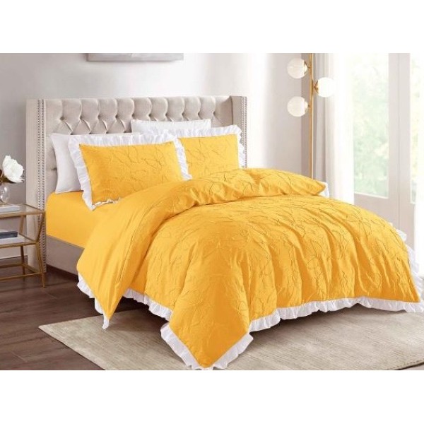 Lenjerie pat dublu, FINET, cu Broderie si Volanase, 4 piese, cu Elastic, galben, Primavara Casa, cod produs: PRC4