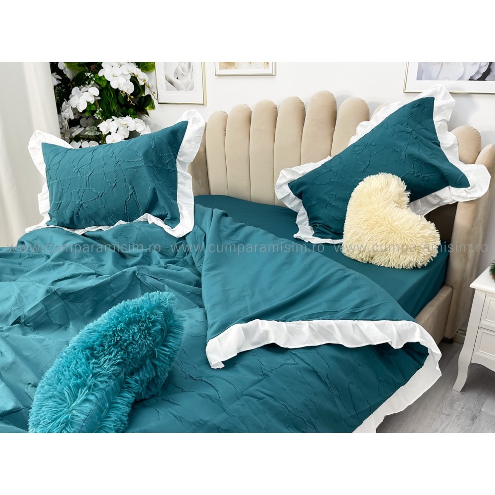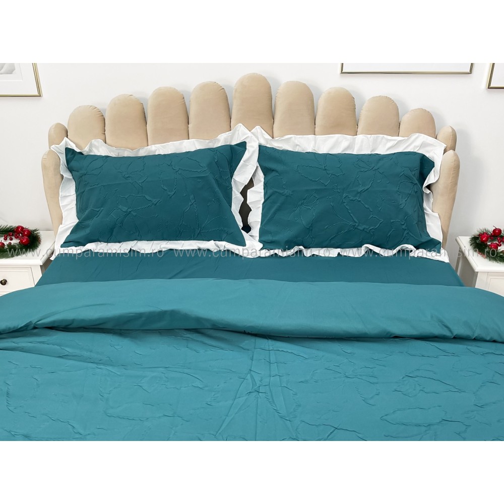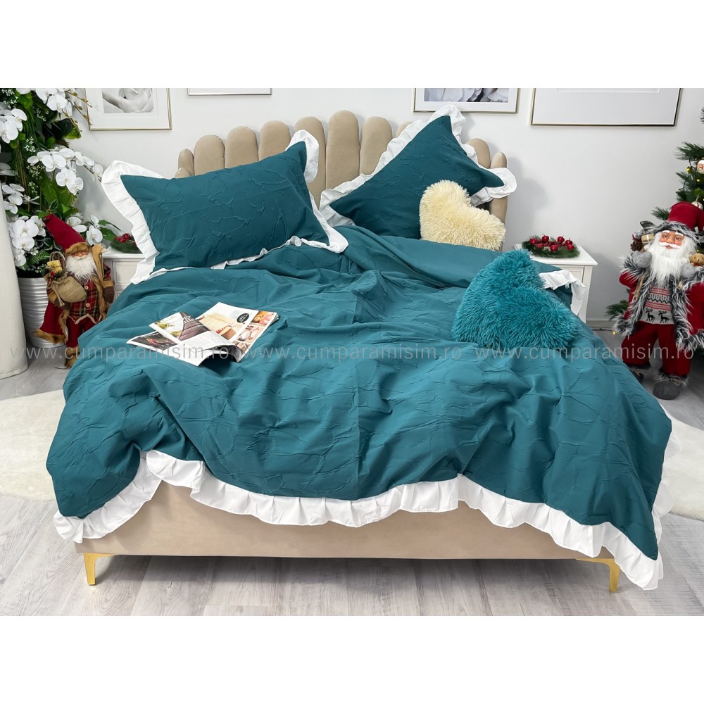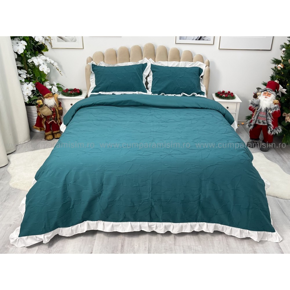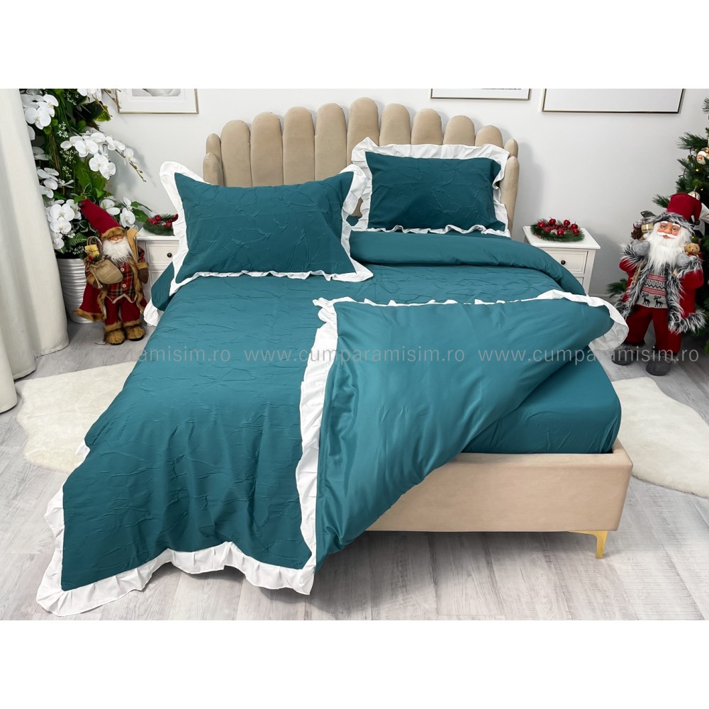 Lenjerie pat dublu, FINET, cu Broderie si Volanase, 4 piese, cu Elastic, verde, Primavara Casa, cod produs: PRC6