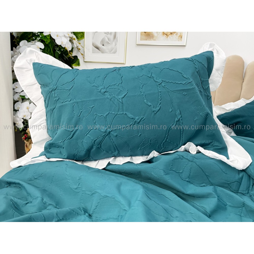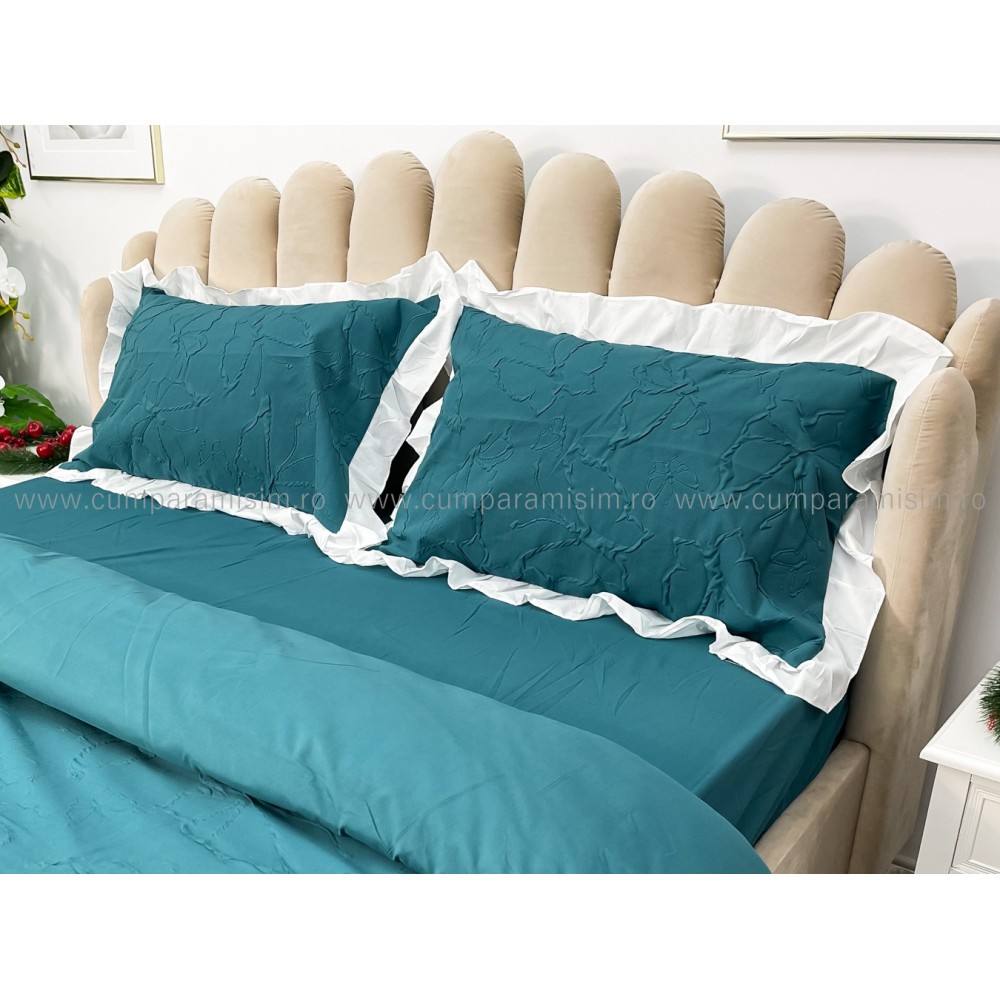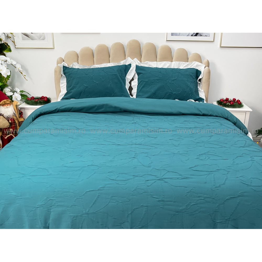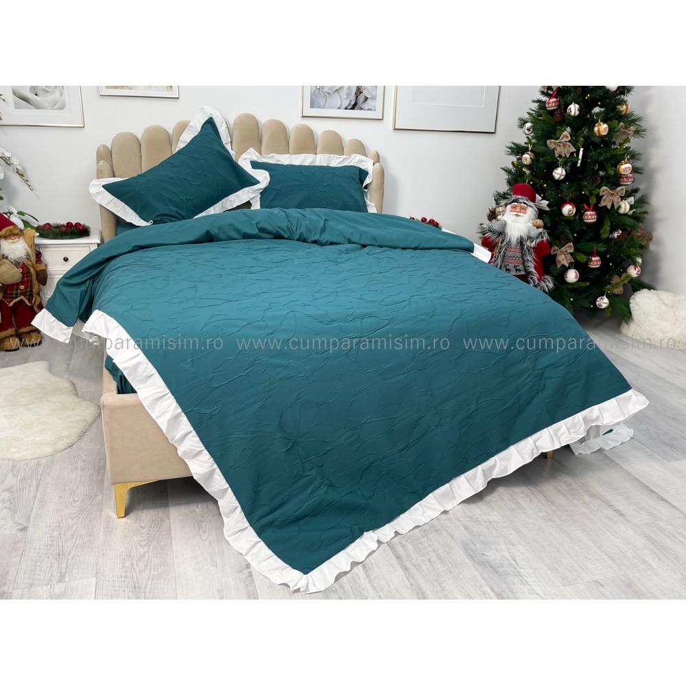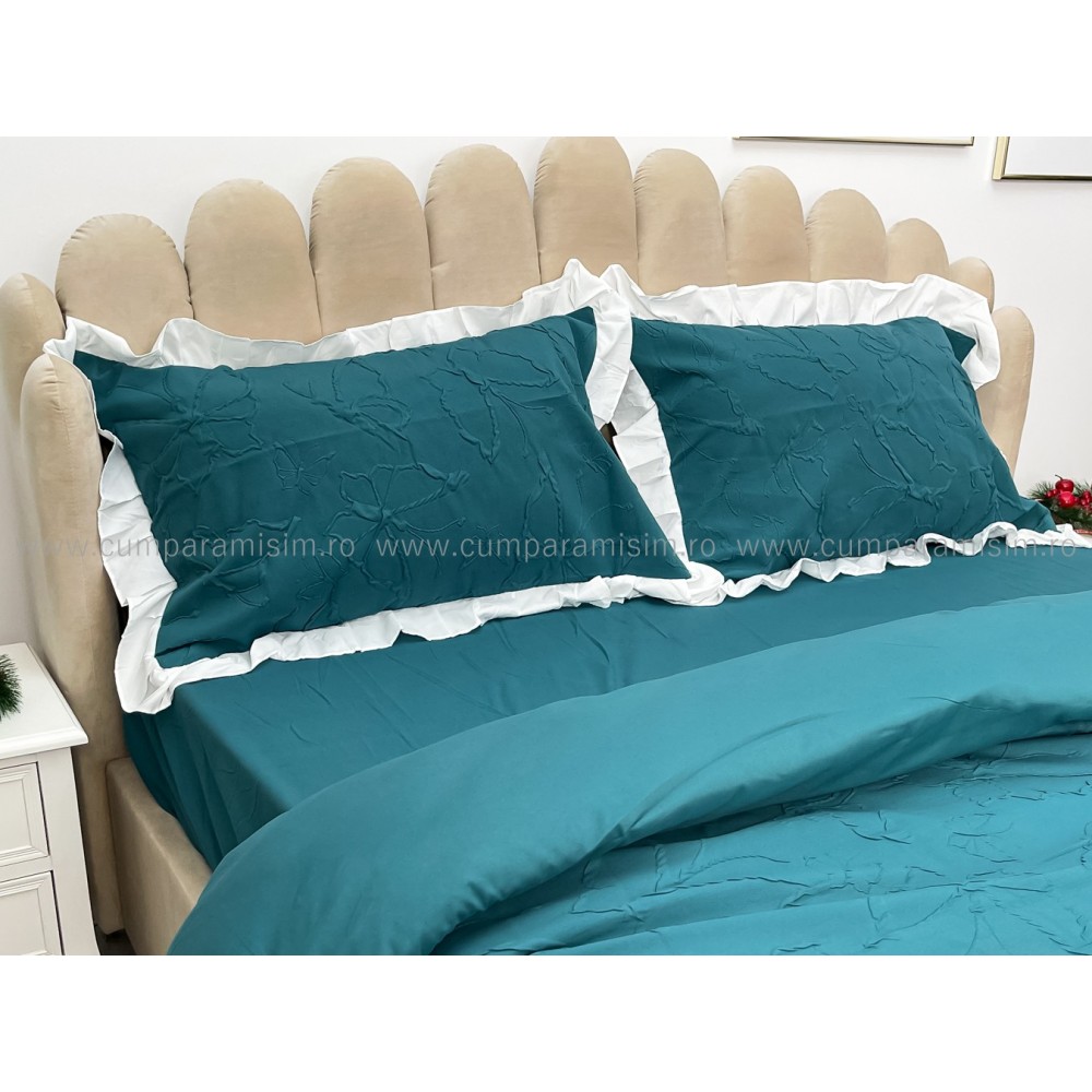 Lenjerie pat dublu, FINET, cu Broderie si Volanase, 4 piese, cu Elastic, verde, Primavara Casa, cod produs: PRC6