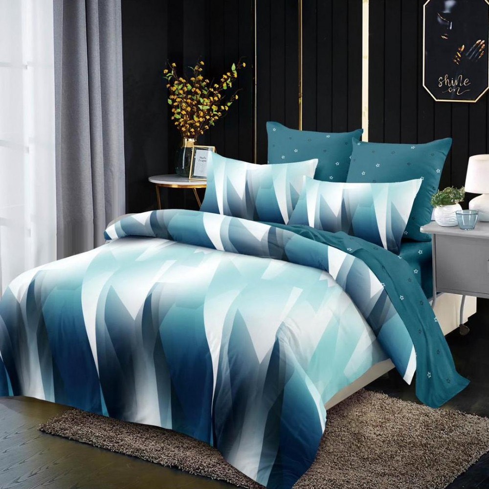 Lenjerie pat dublu, FINET, cu elastic, 6 piese, Alb, Turquoise, Abstract, Primavara Casa, cod produs: PRM-FE-B815