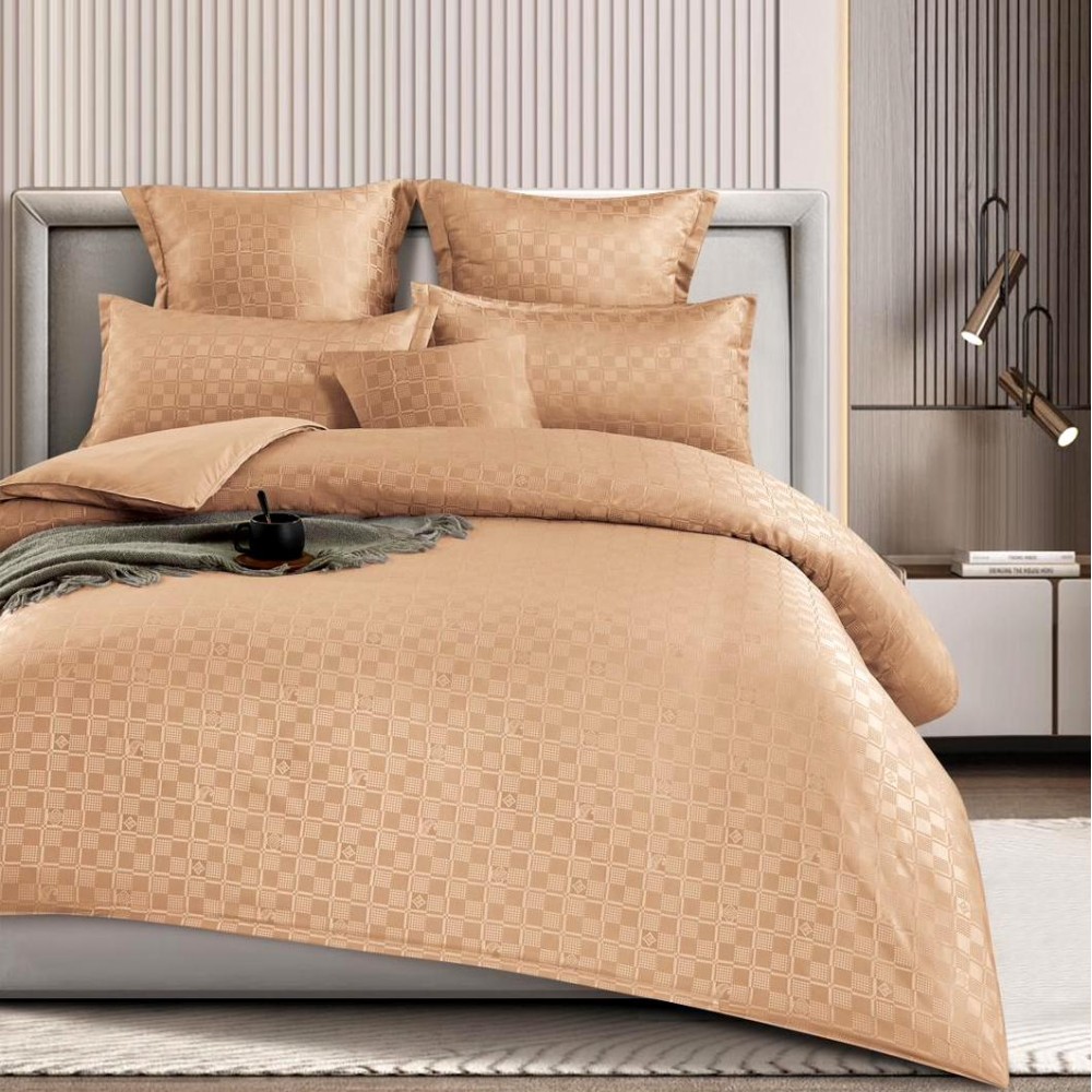 Lenjerie pat dublu, FINET cu ELASTIC, 6 piese, Bej inchis, Johny Home Pucioasa, cod produs: SPR-T4-10