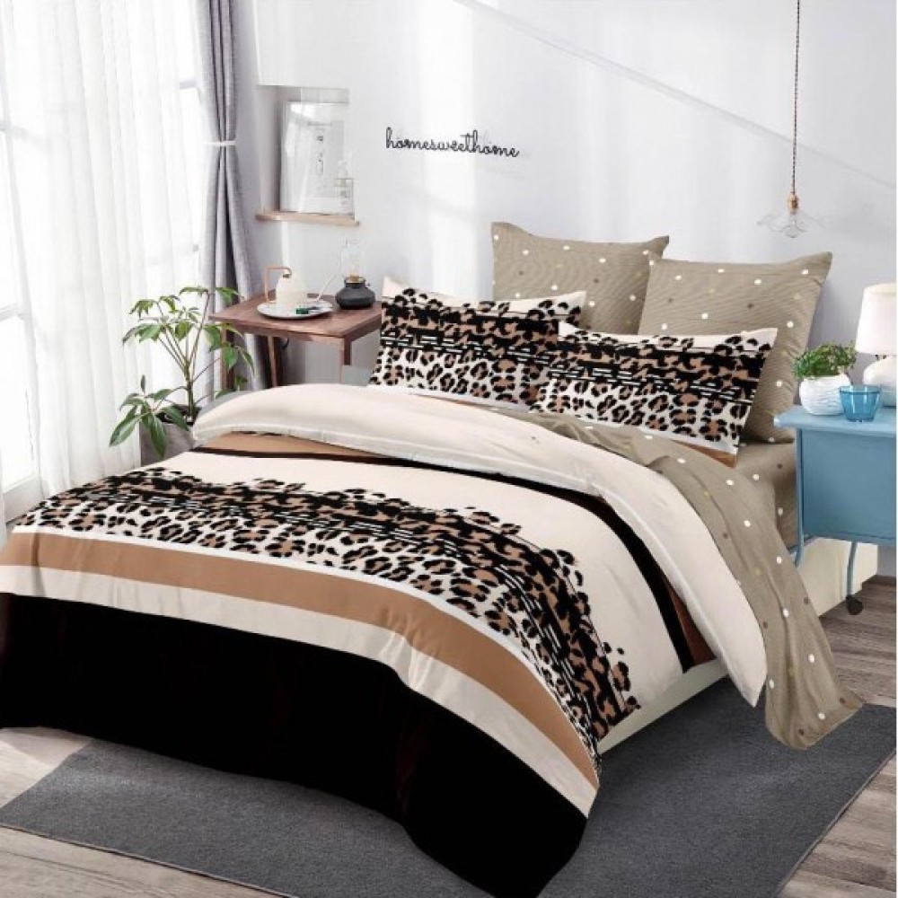 Lenjerie pat dublu, FINET, cu elastic, 6 piese, Bej, Maro, Dungi, Animal Print, Primavara Casa, cod produs: PRM-FE-B828