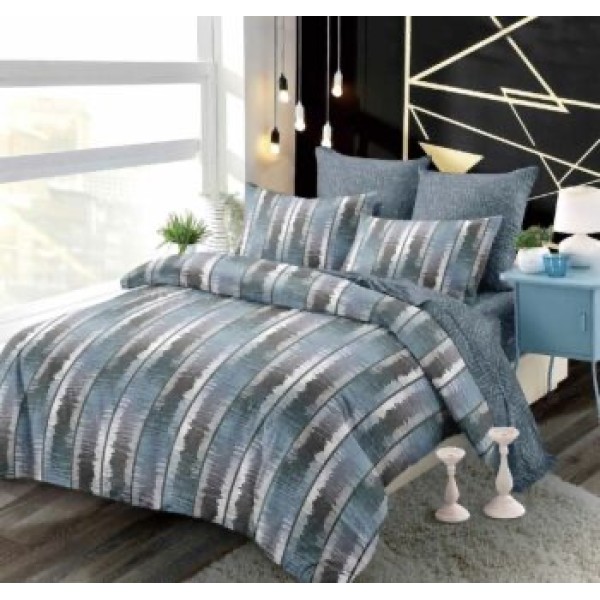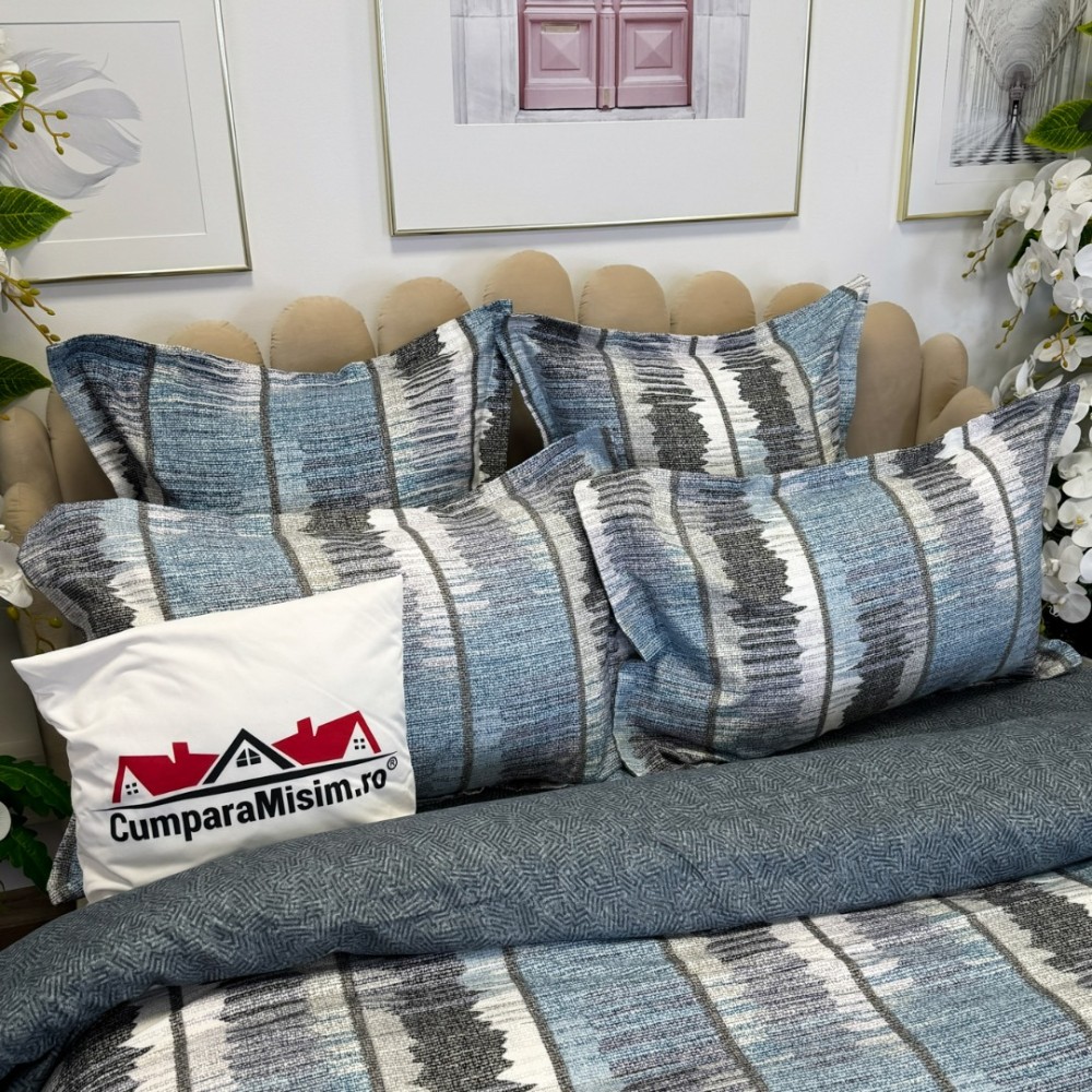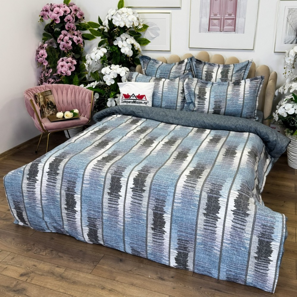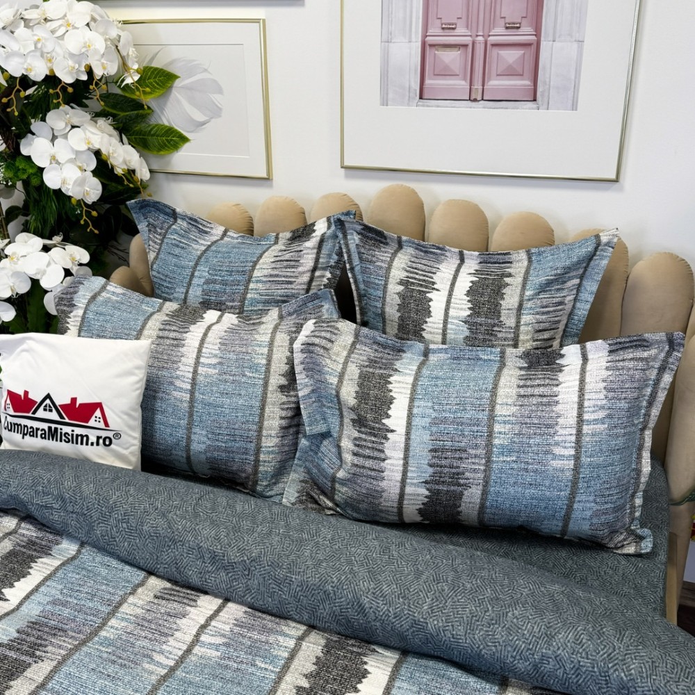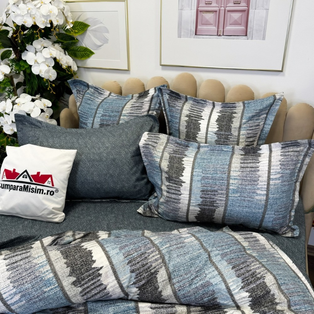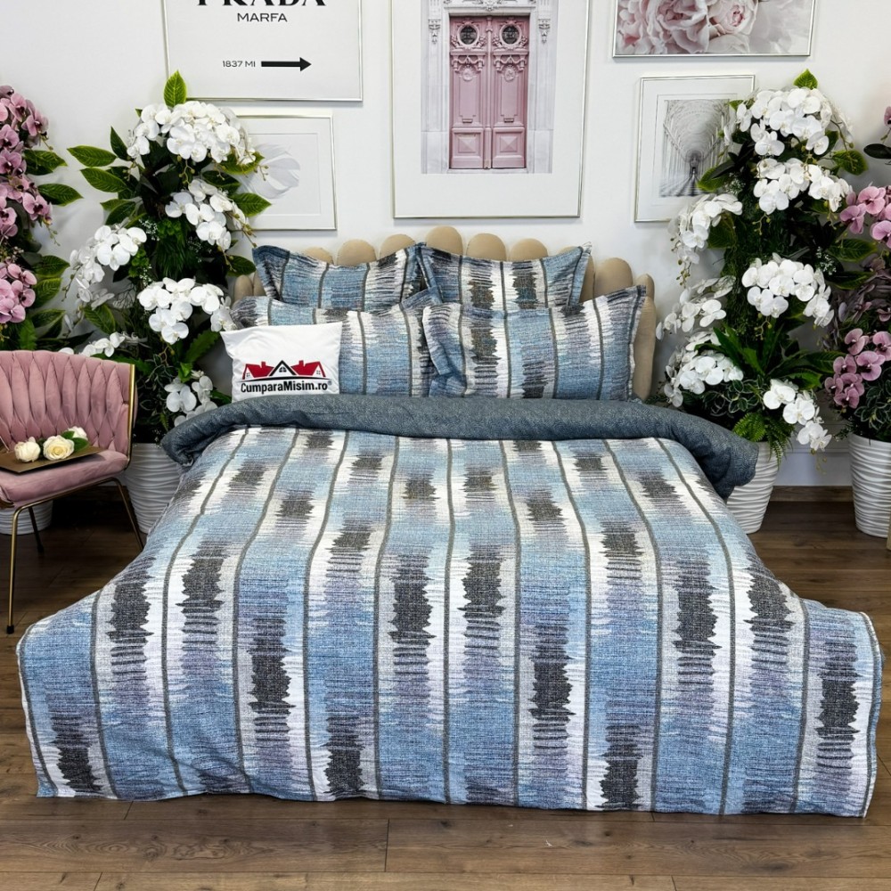 Lenjerie pat dublu, FINET, cu elastic, 6 piese, Gri, Albastru, Abstract, Primavara Casa, cod produs: PRM-FE-B883