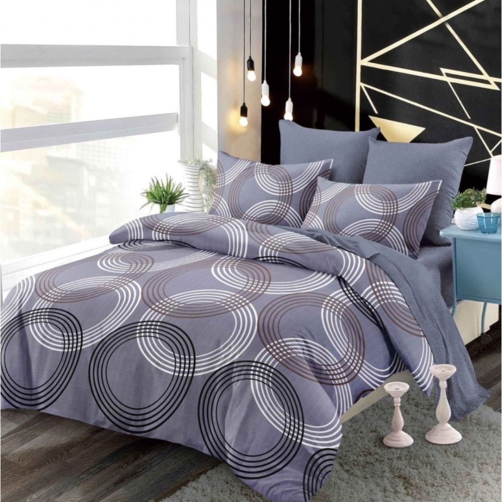 Lenjerie pat dublu, FINET, cu elastic, 6 piese, Gri Albăstrui, Cercuri, Primavara Casa, cod produs: PRM-FE-B6015
