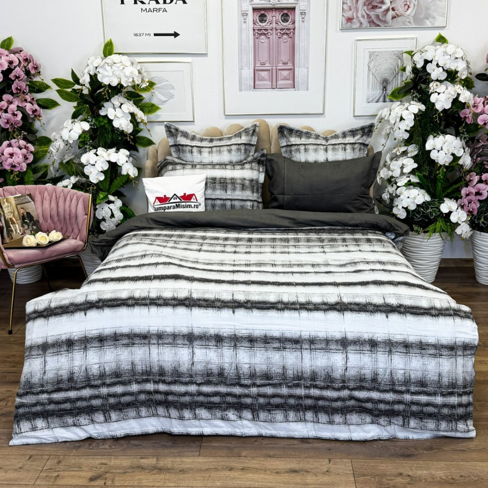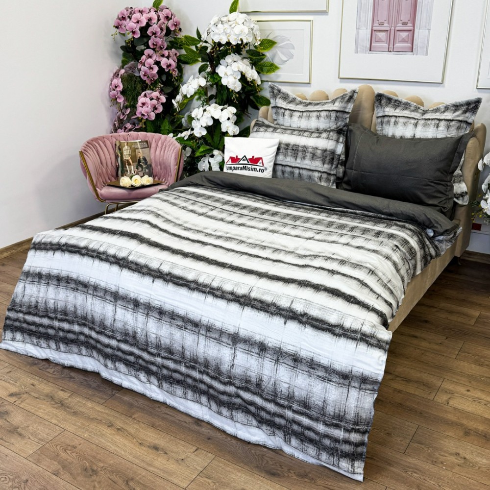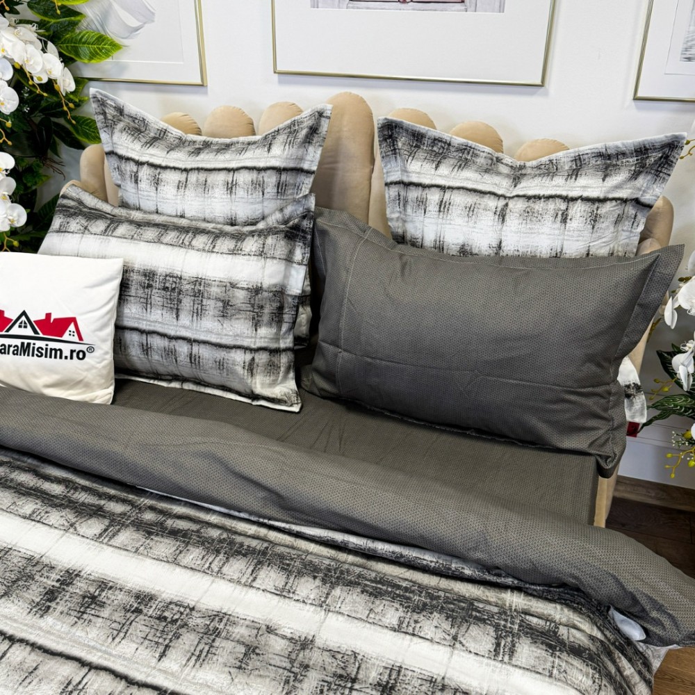Lenjerie pat dublu, FINET, cu elastic, 6 piese, Gri, Dungi, Primavara Casa, cod produs: PRM-FE-B884