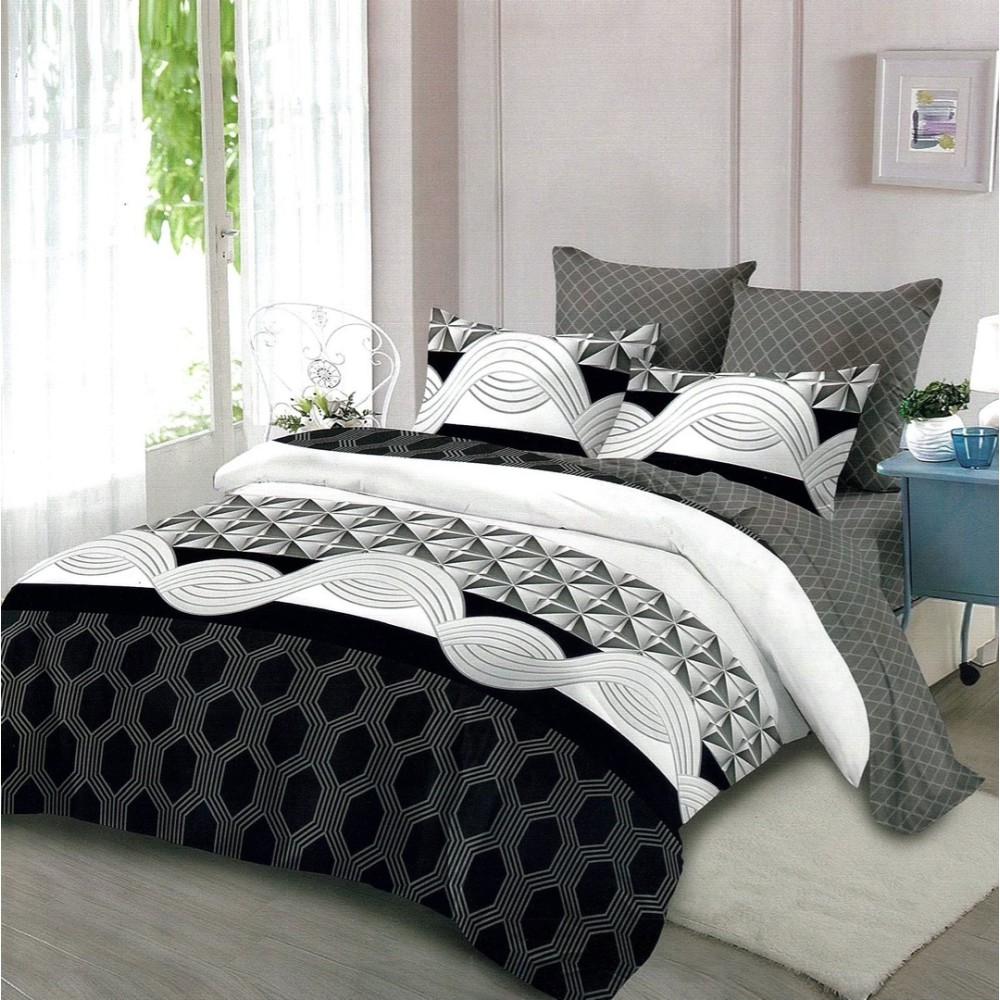 Lenjerie pat dublu, FINET, cu elastic, 6 piese, Gri-Negru, forme geometrice, Primavara Casa, cod produs: CFE259
