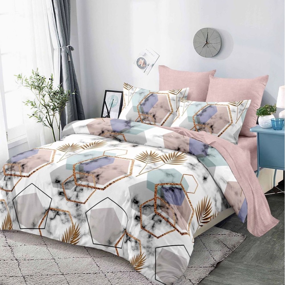 Lenjerie pat dublu, FINET, cu elastic, 6 piese, Gri-Roz, abstract, Primavara Casa, cod produs: CFE319