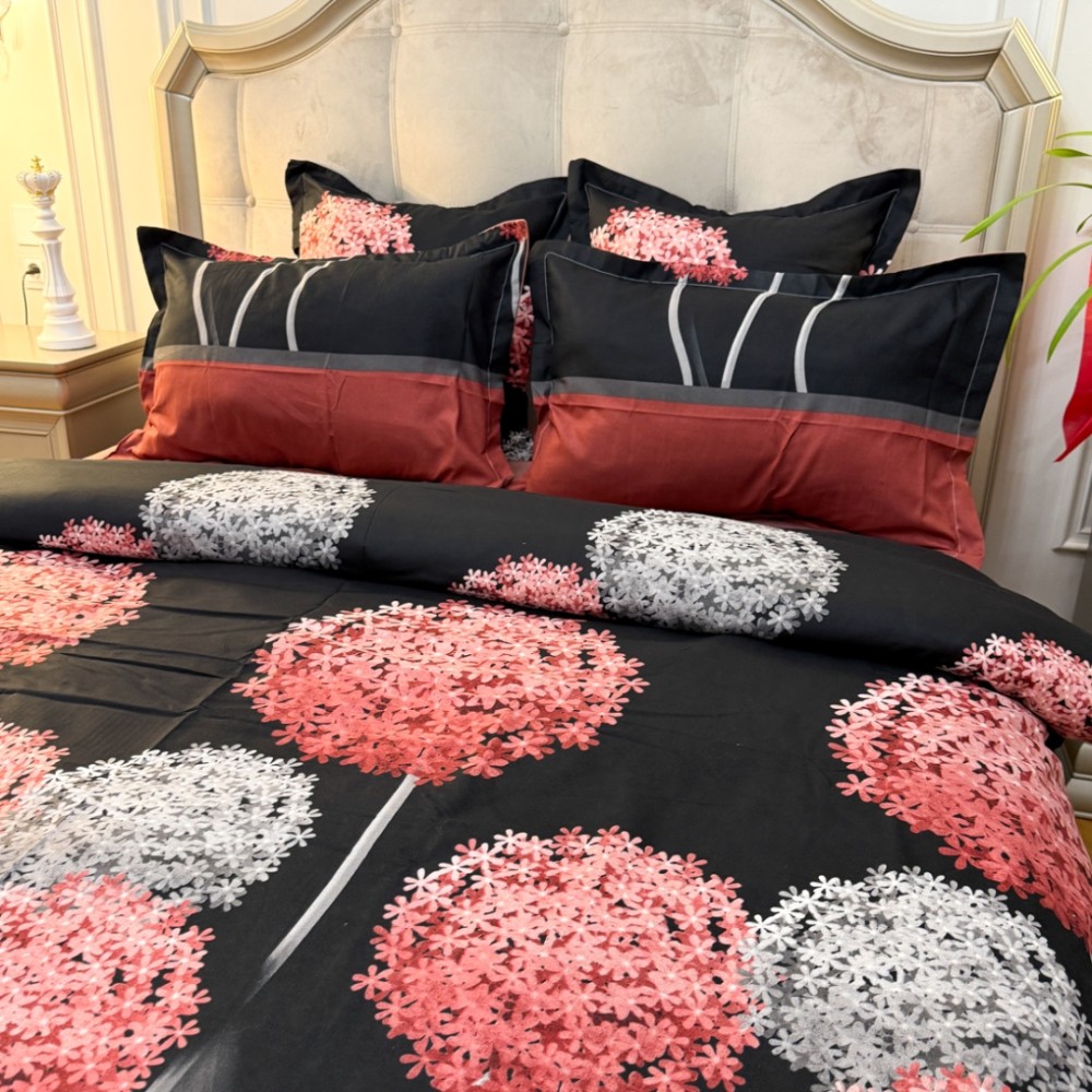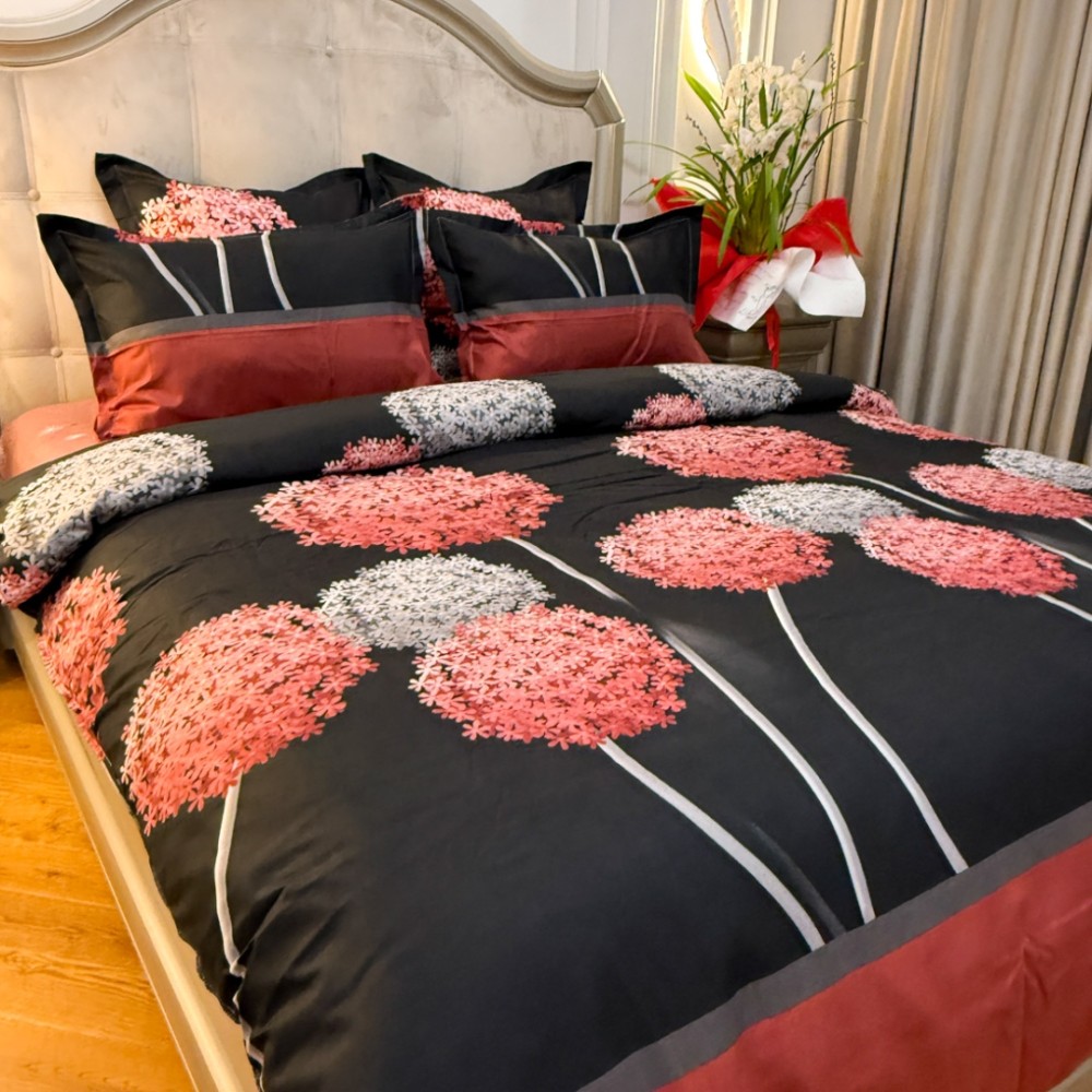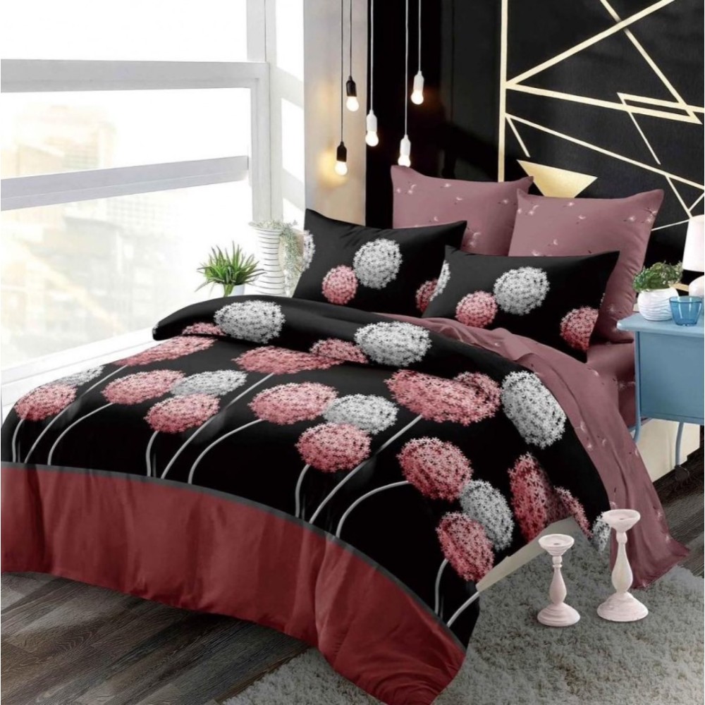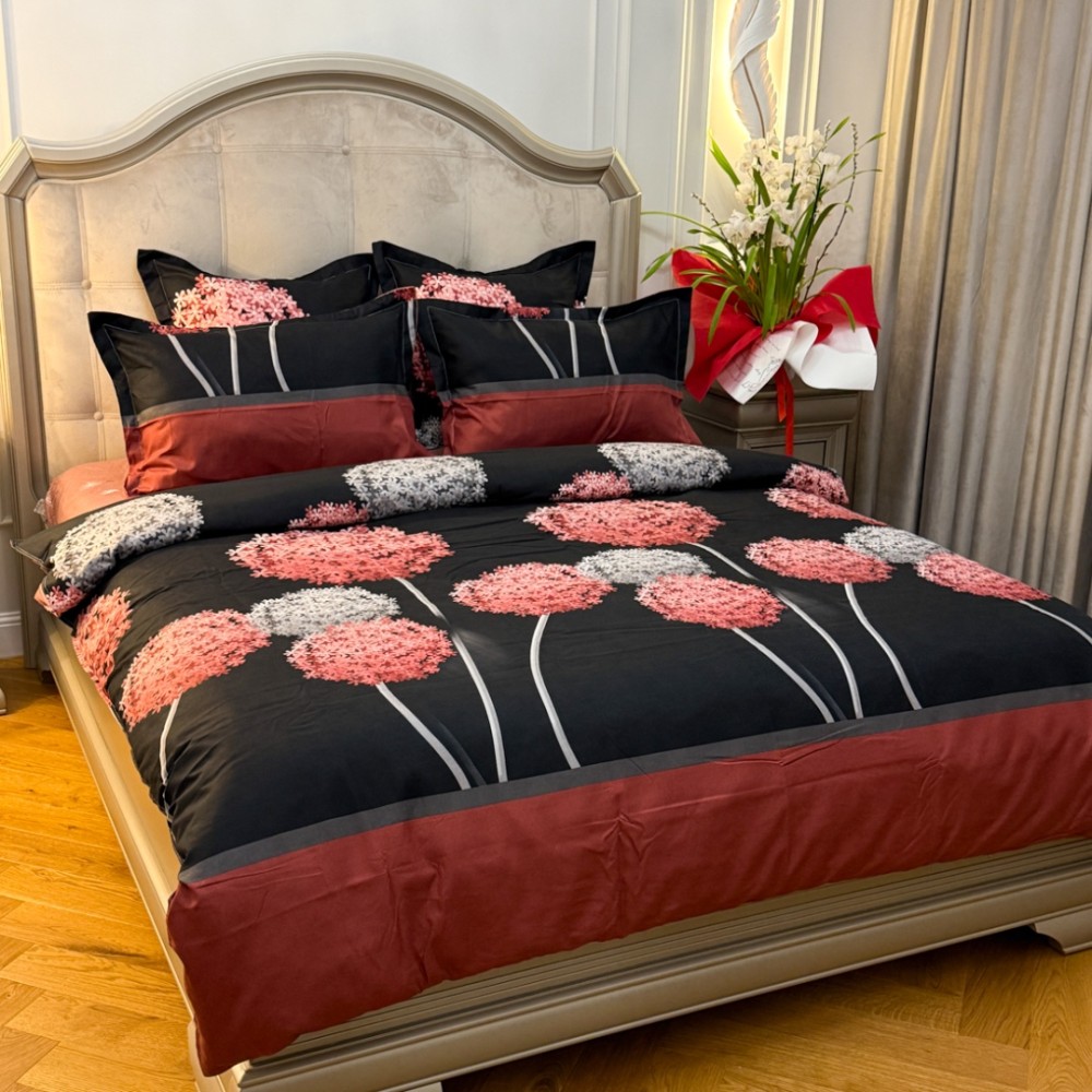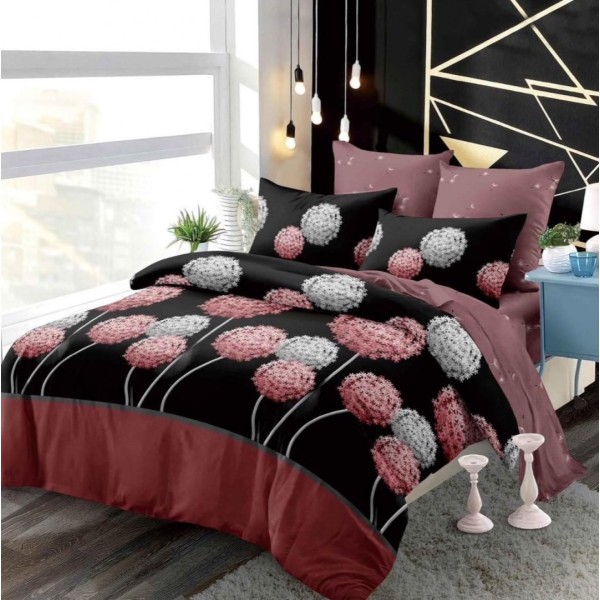 Lenjerie pat dublu, FINET, cu elastic, 6 piese, Negru, Rosu, papadii, Primavara Casa, cod produs: PRM-FE-B934