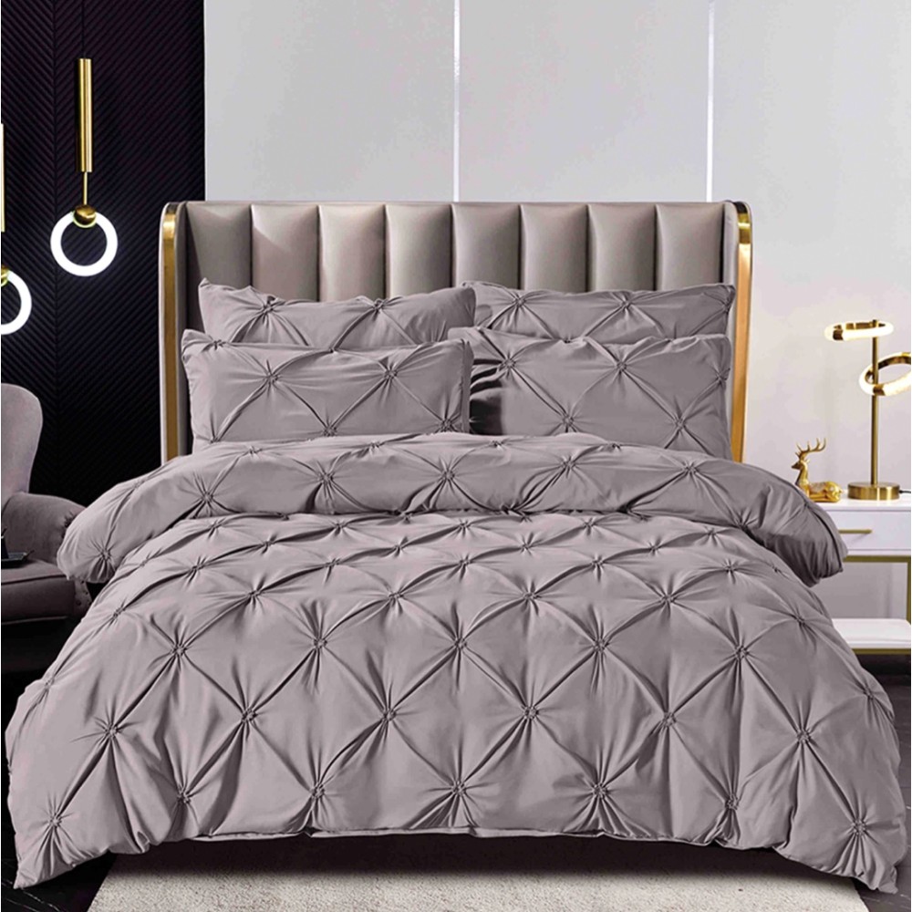 Lenjerie pat dublu, FINET cu ELASTIC, 6 piese, PLIURI BRODATE, Jojo Home, Gri, cod produs: JOP211