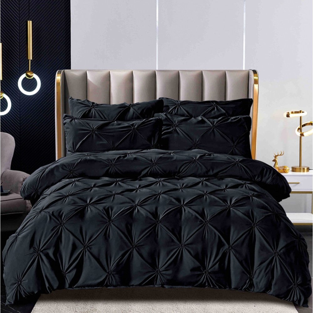 Lenjerie pat dublu, FINET cu ELASTIC, 6 piese, PLIURI BRODATE, Jojo Home, Negru, cod produs: JOP200