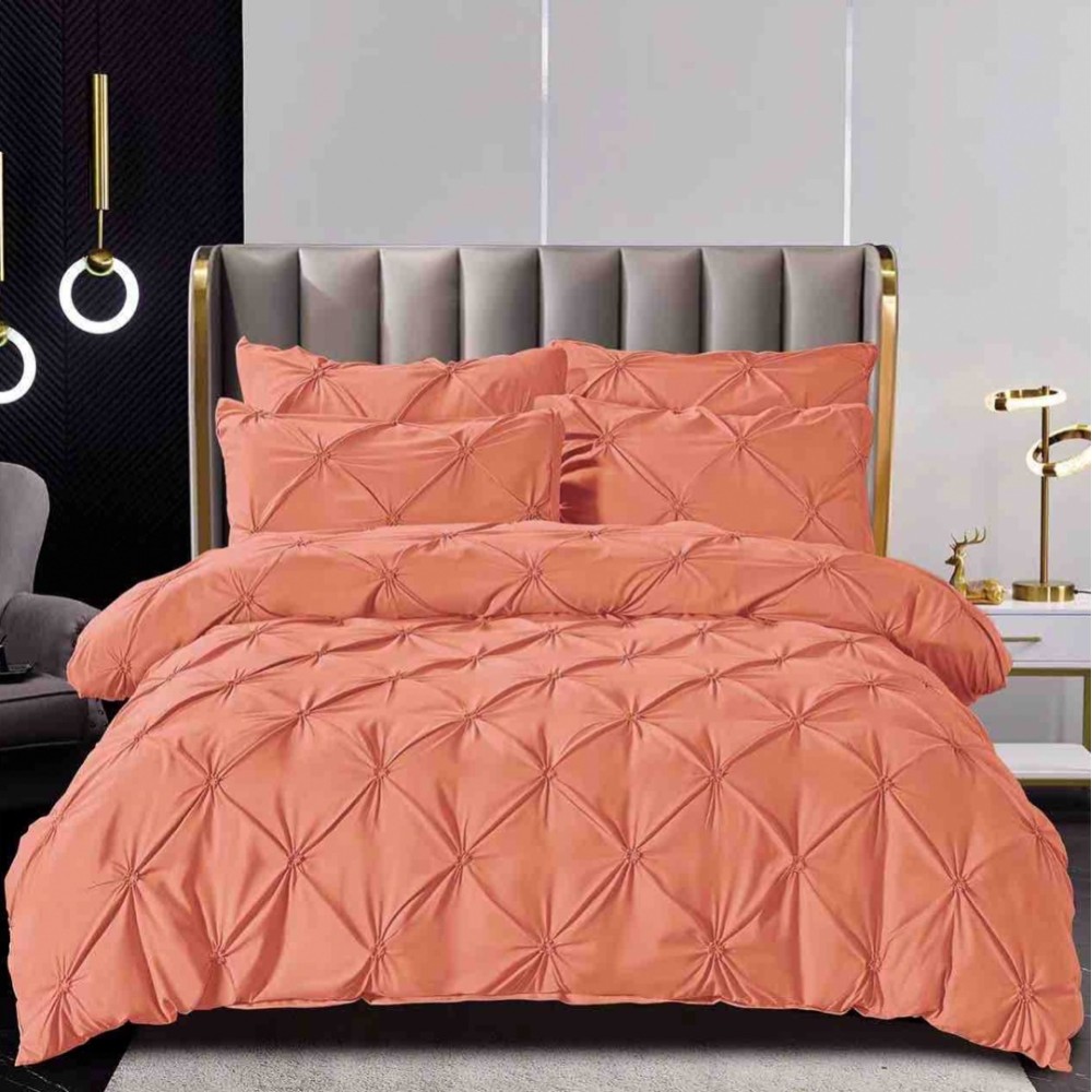 Lenjerie pat dublu, FINET cu ELASTIC, 6 piese, PLIURI BRODATE, Jojo Home, Portocaliu, cod produs: JOP208