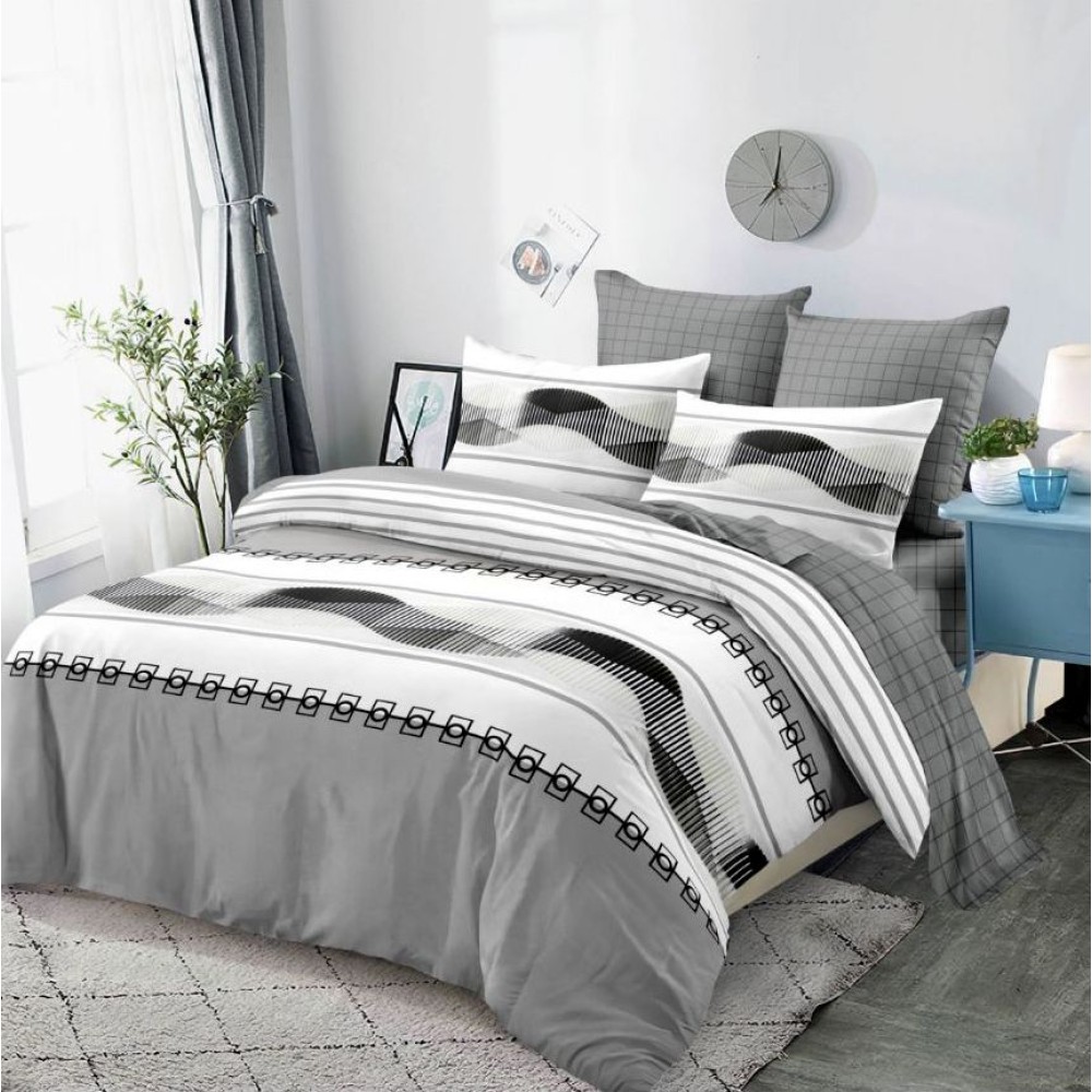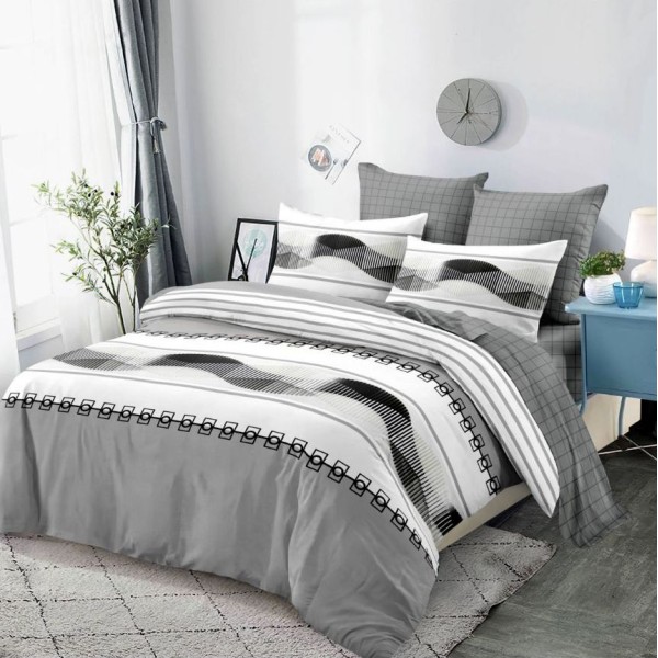 Iti recomandam cu incredere aceasta lenjerie pentru pat dublu cu 6 piese, confectionata din 100% bumbac, tesatura tip finet, ce cu siguranta va asigura esteticul perfect pentru dormitorul tau, prin design-ul modern si culorile rafinate.