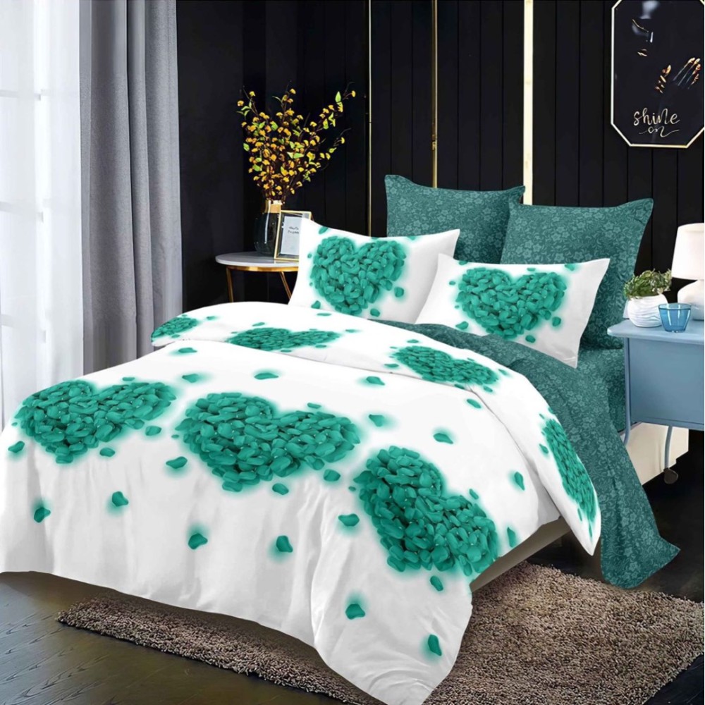 Lenjerie pat dublu, FINET, cu elastic, 6 piese, Verde, inimioare, Primavara Casa, cod produs: CFE346