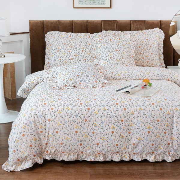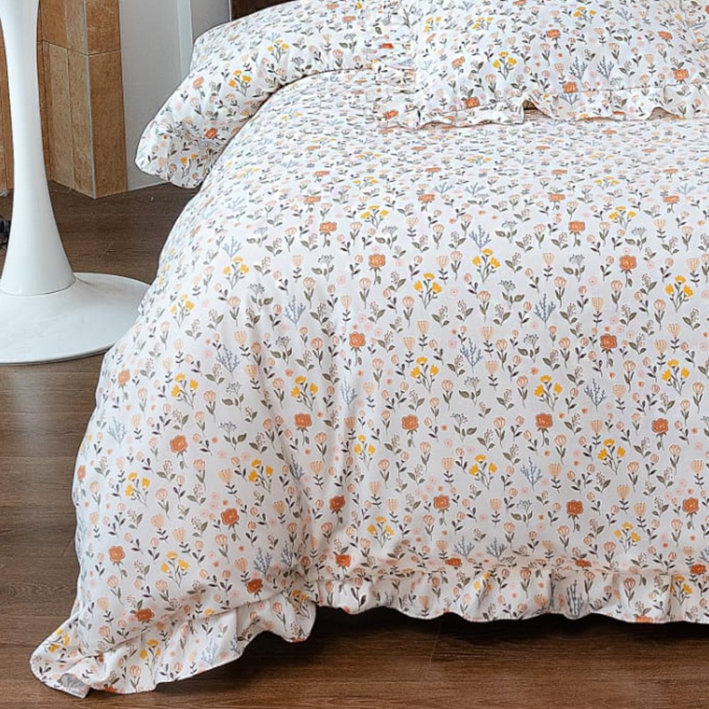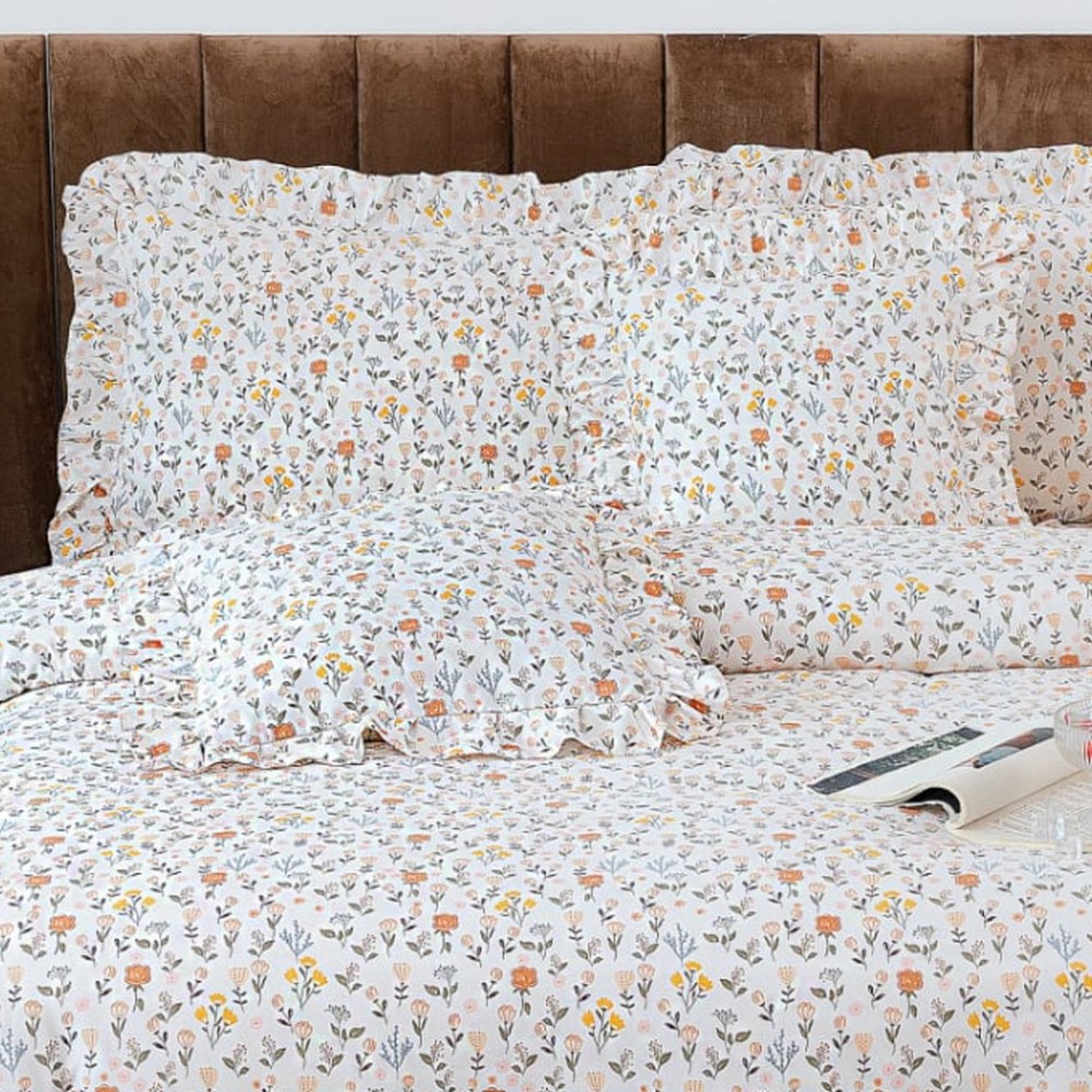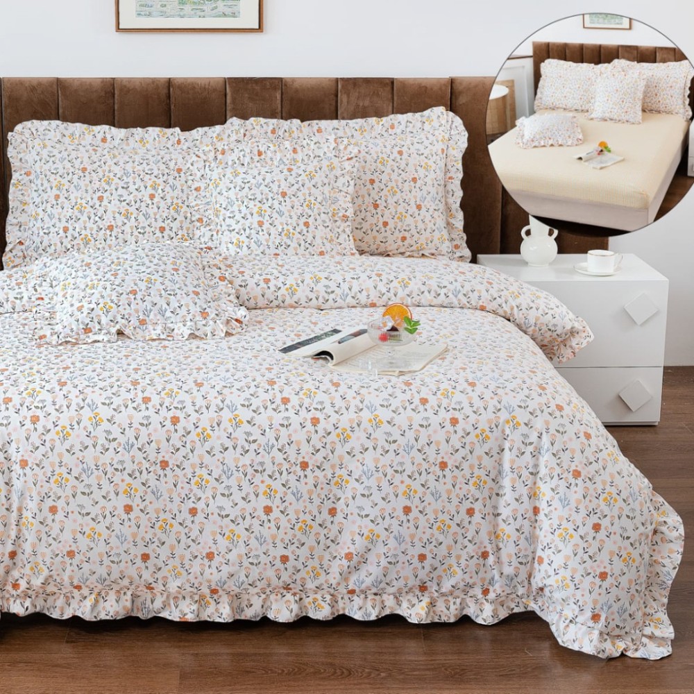 Lenjerie de Pat 6 Piese din Bumbac Finet cu Volănașe – Eleganță și Răsfăț pentru Somnul Tău
