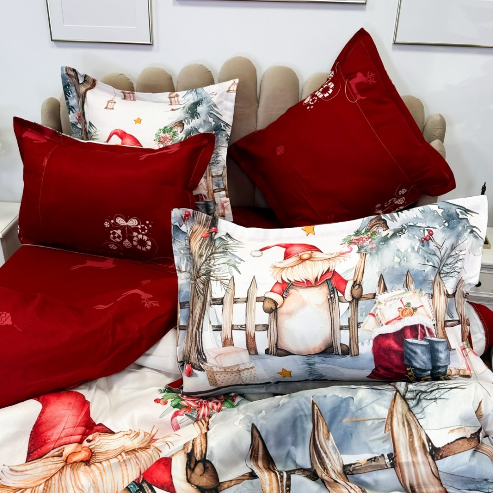 Adaugă un plus de magie sărbătorilor cu această lenjerie de pat din bumbac finet, care combină estetica festivă cu un confort de neegalat și un avantaj practic de neegalat: nu necesită călcare!