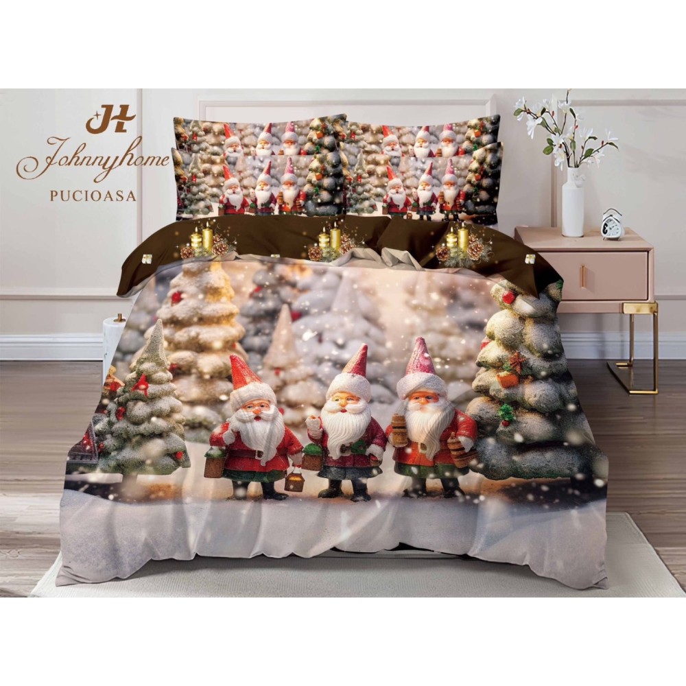 Lenjerie de pat Crăciun din bumbac 100% finet - Confort și Eleganță Festivă
