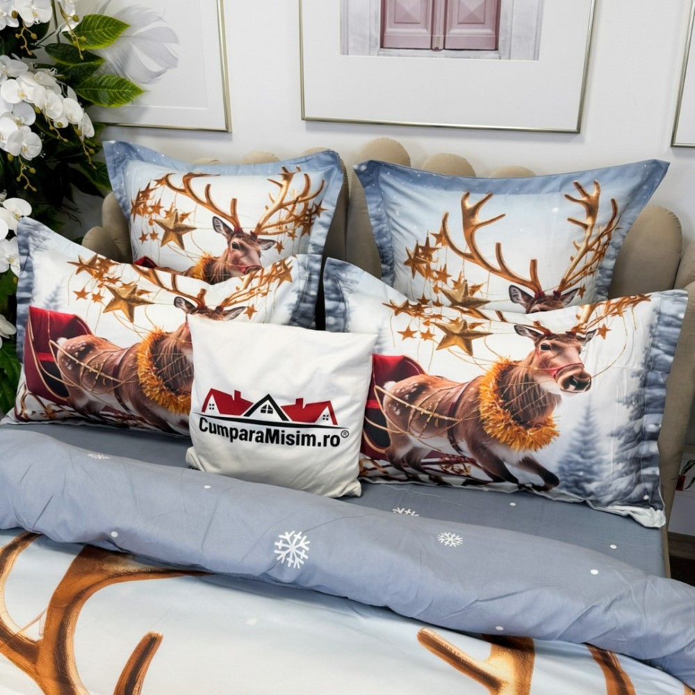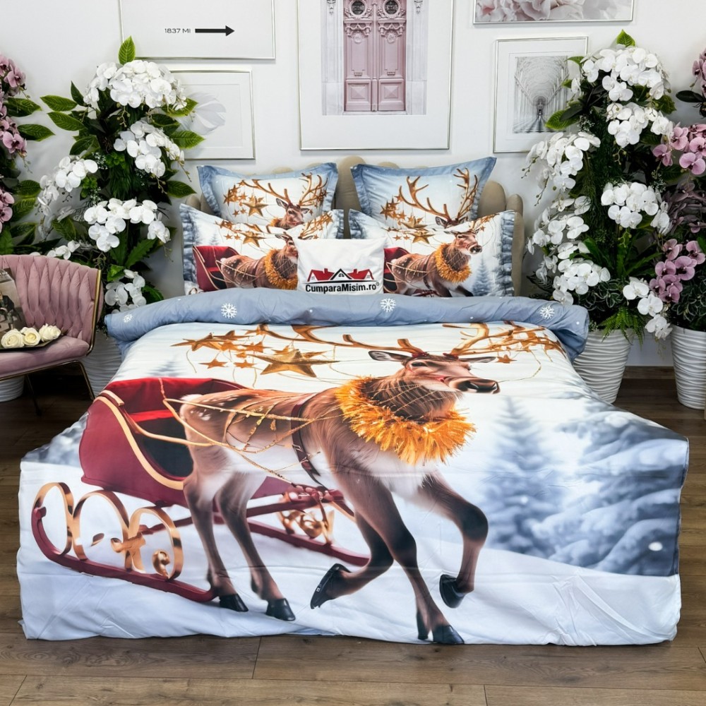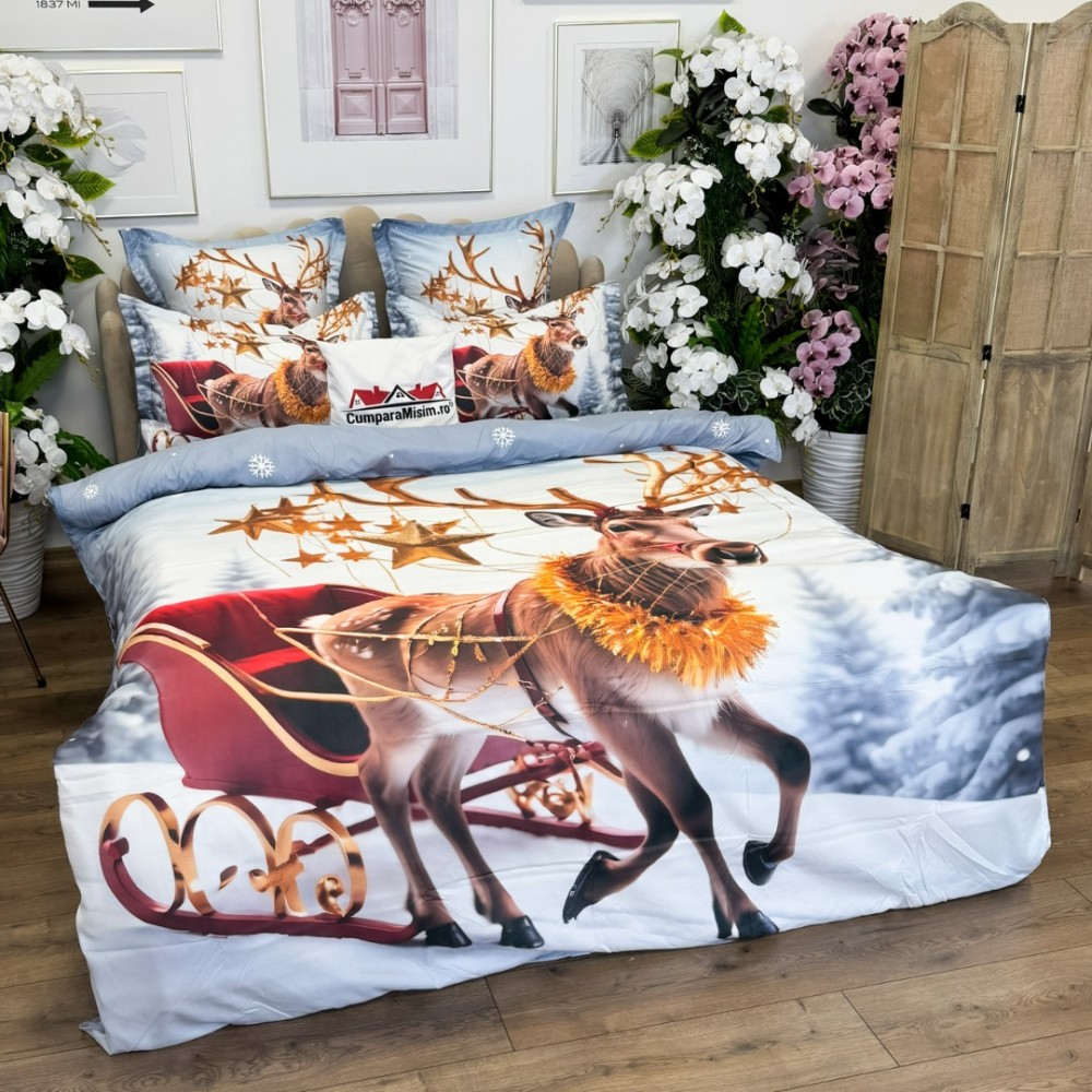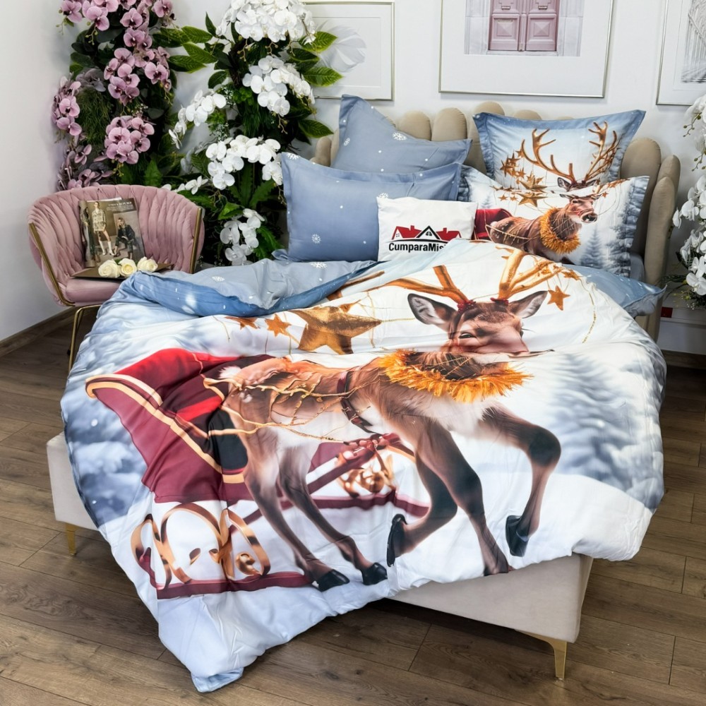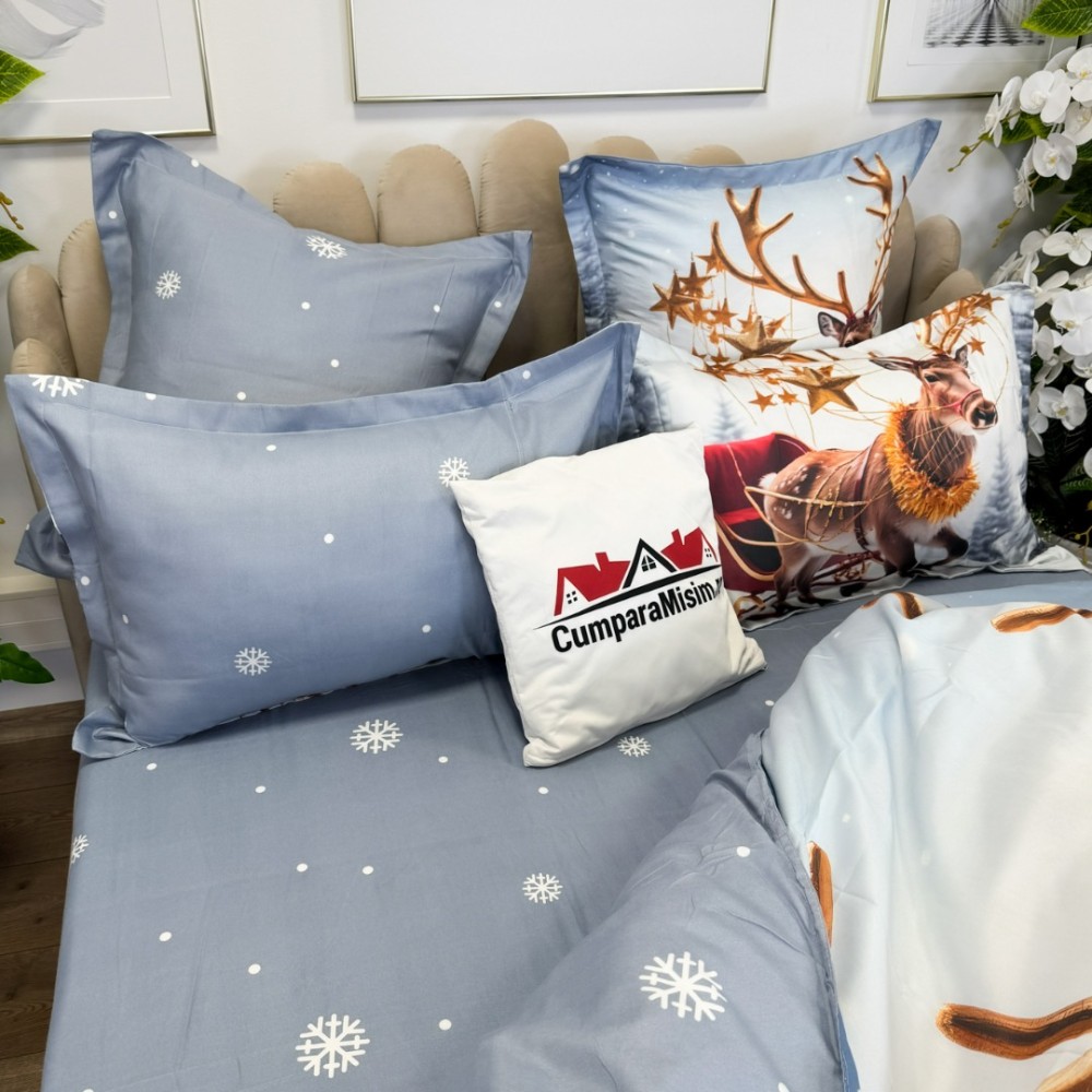 Lenjerie de pat Crăciun din bumbac 100% finet - Confort și Eleganță Festivă