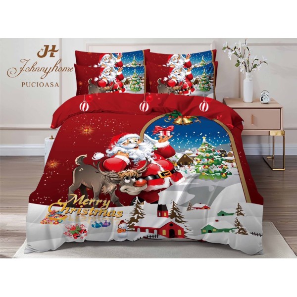 Lenjerie de pat Crăciun din bumbac 100% finet - Confort și Eleganță Festivă
